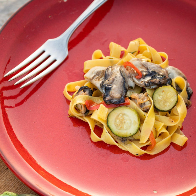 RECEPT S PELJEŠCA Slasne tagliatelle od kamenica s ljetnim tikvicama i paprikom koje se nekoliko puta grabi iz teće 20.08.2021. u 15:12