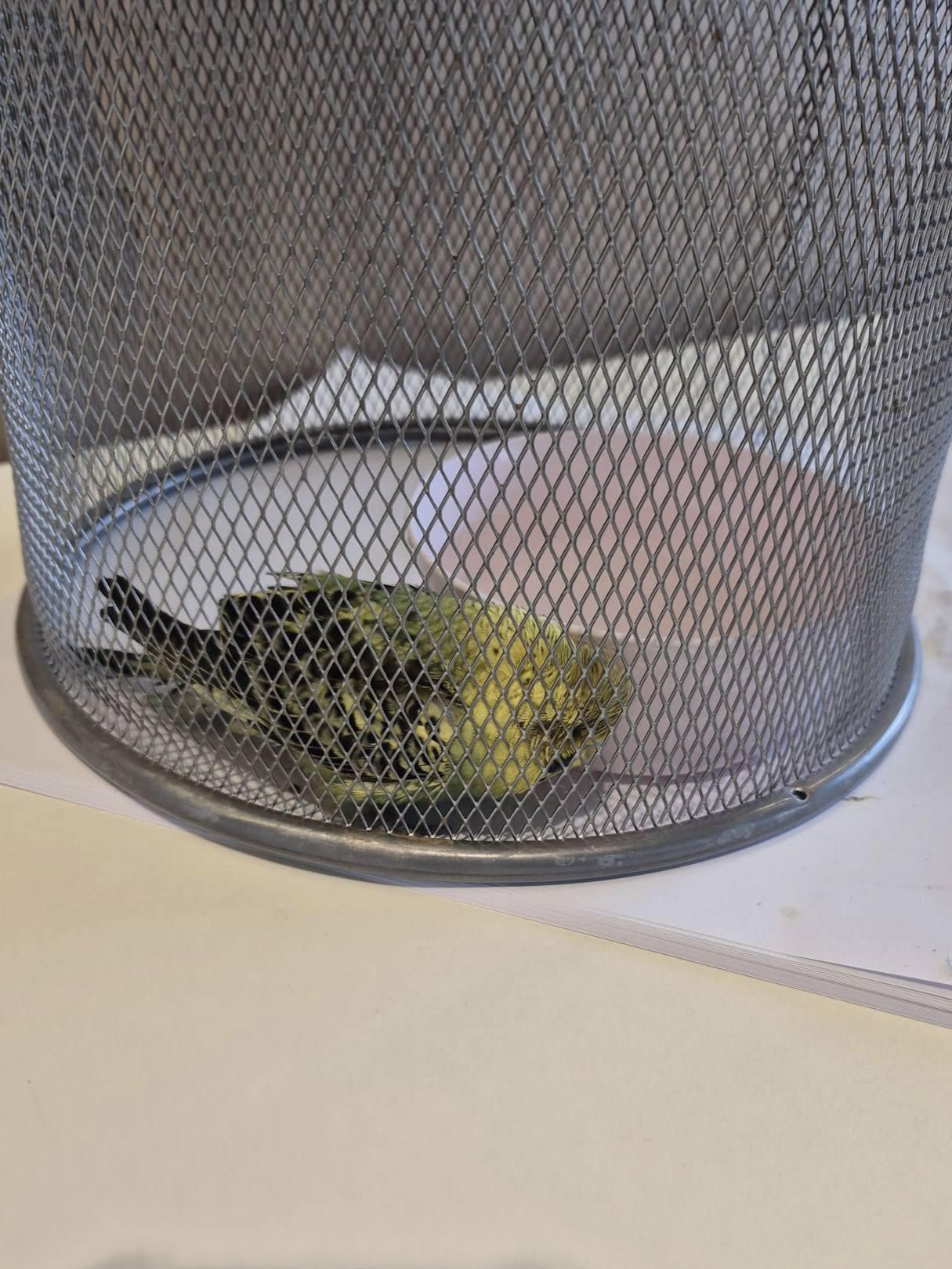 No, morali su ih nekako pričuvati dok hvatači nisu došli po njih, pa su se snašli s onim što su imali. Dok je jedno rješenje bilo nešto jednostavnije, a zahtijevalo je samo zdjelicu s vodom i prevrnutu kantu za smeće, drugo je ipak bilo složenije. Zahtijevalo je nešto rada kako bi velika boca za vodu mogla biti privremeni kavez.