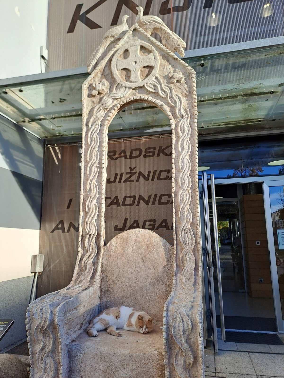 Jedan mačak potvrdio je sve navedeno. Riječ je o mačku imena Jura koji je zaposlenicima Pučkog otvorenog učilišta Novska itekako poznat. Nije nikoga pretjerano iznenadilo što je u zadnjim danima izložbe ‘Duvno polje – kraljevsko prijestolje‘ Jura odlučio sjesti na prijestolje. Izgleda da se okrunio za kralja, kažu u šali iz POU Novska.