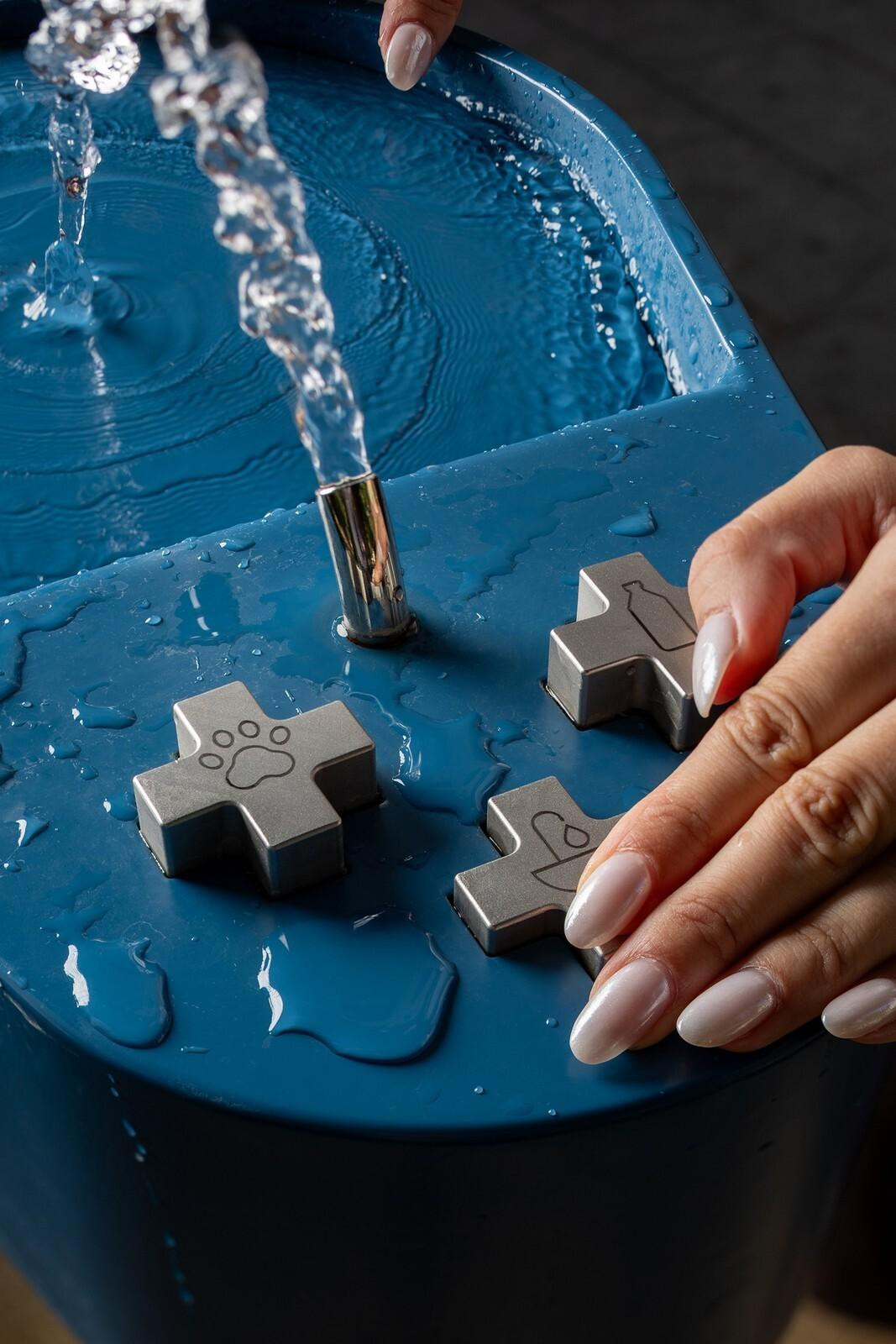 Nova česma izrađena je od čeličnih industrijskih cijevi u tri različita promjera, spojenih zavarivanjem i vijcima u elegantno zakrivljenu formu. Estetski minimalistička, ali funkcionalno izuzetno bogata, česma omogućuje tri načina korištenja: za izravno pijenje vode, za punjenje boca te za utaživanje žeđi kućnih ljubimaca, za koje je osigurana zasebna dovodna cijev s čistom, svježom vodom.