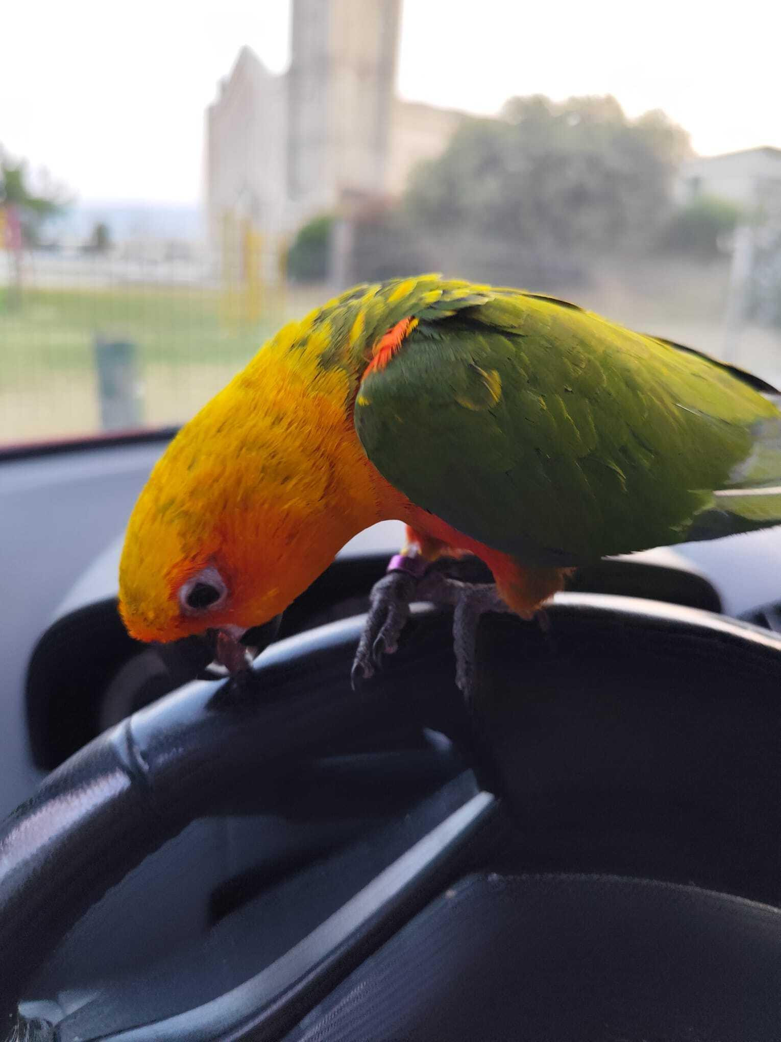 Dvije papige lete slobodno gradom. Kad im dosadi, vrate se doma. Može ih se vidjeti kako se sa svojom vlasnicom voze u automobilu, a rado će pozirati i za kakvu fotografiju, uz ljude. Trenirane su tako, priča nam njihova vlasnica Sabina Naimkadić iz Ploča, koja cijeli život ima papige.