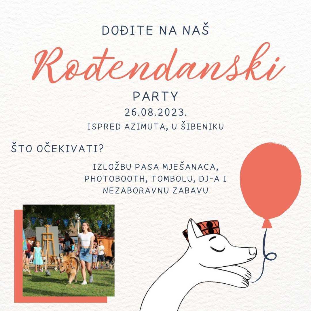 Udruga za zaštitu životinja Šibenske šape organizira rođendansko druženje, koje će se održati u subotu 26. kolovoza od 15 do 23.45 sati u kafiću Azimut.