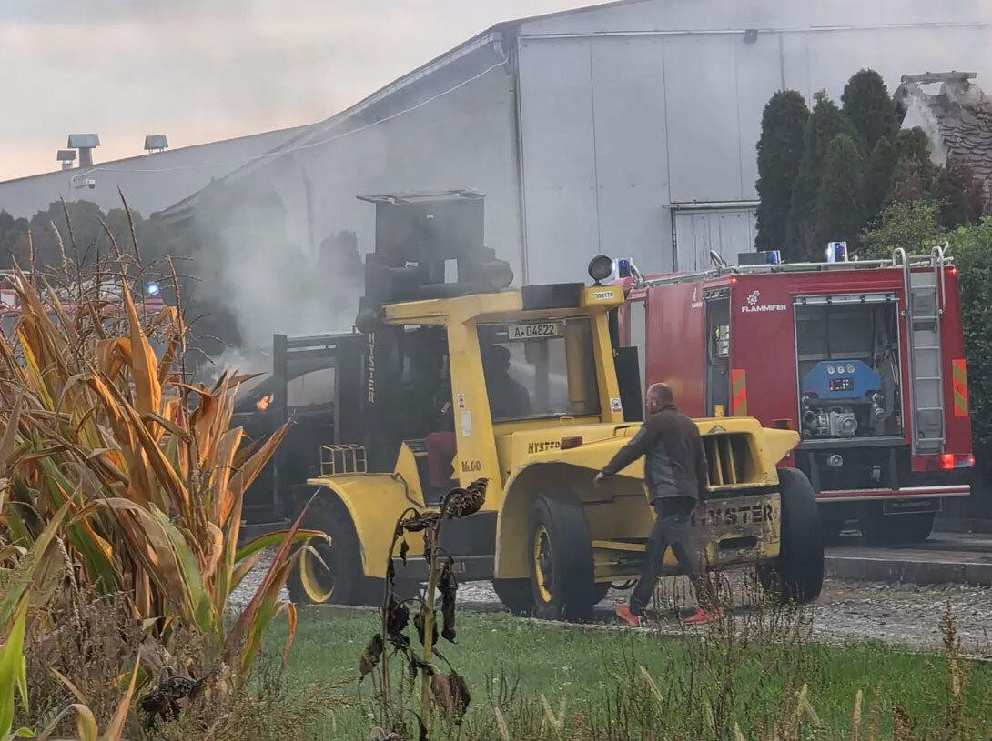 Viličarima se pokušavaju spasiti ostala vozila koja požar još uvijek nije u potpunosti uništio.
