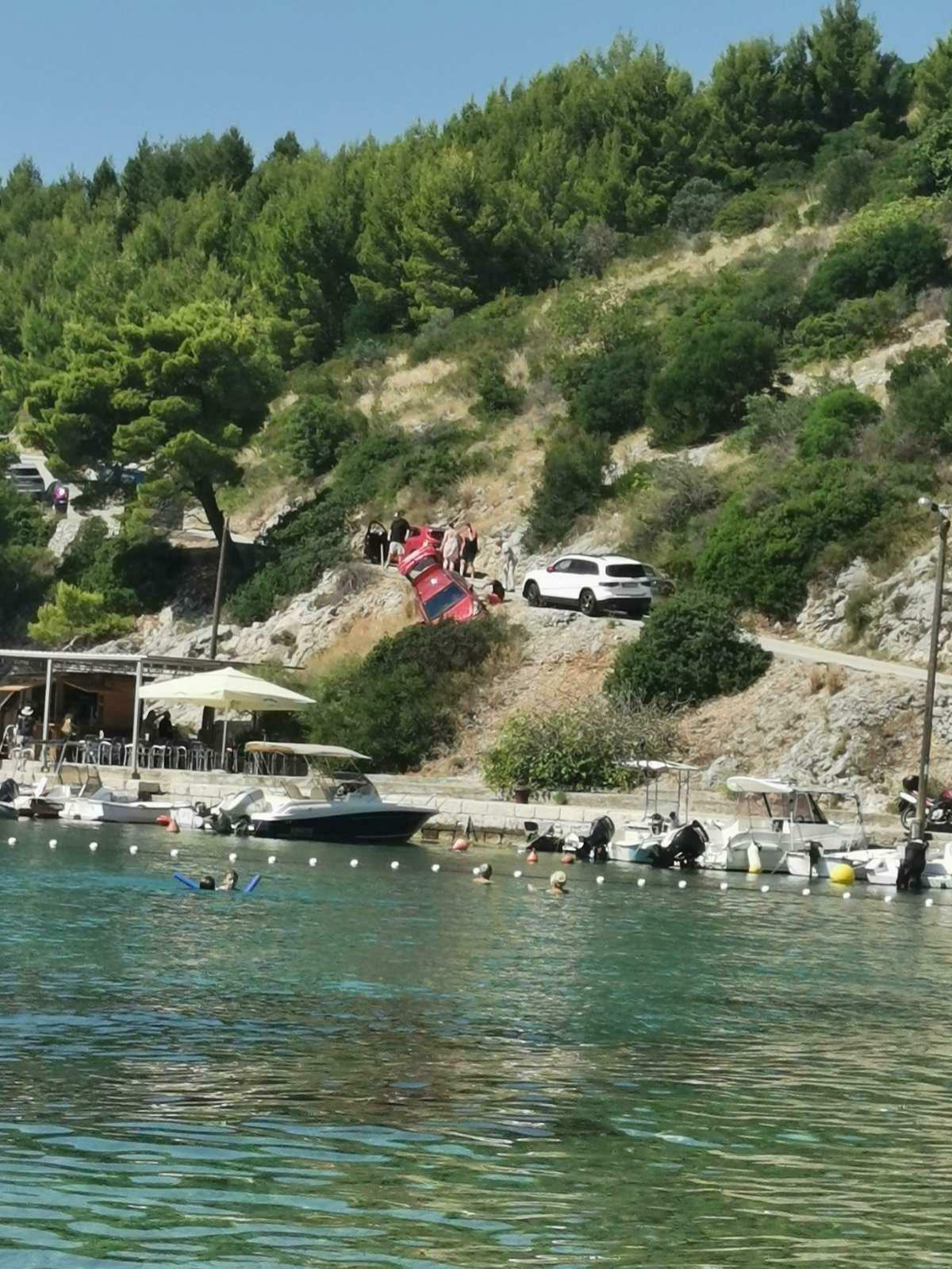 Srećom, zaustavio se u žbunju samo nekoliko metara od suncobrana, no da je kojim slučajem nastavio kliziti ne treba sumnjati kakva bi se tragedija dogodila, prenosi Dubrovački vjesnik.