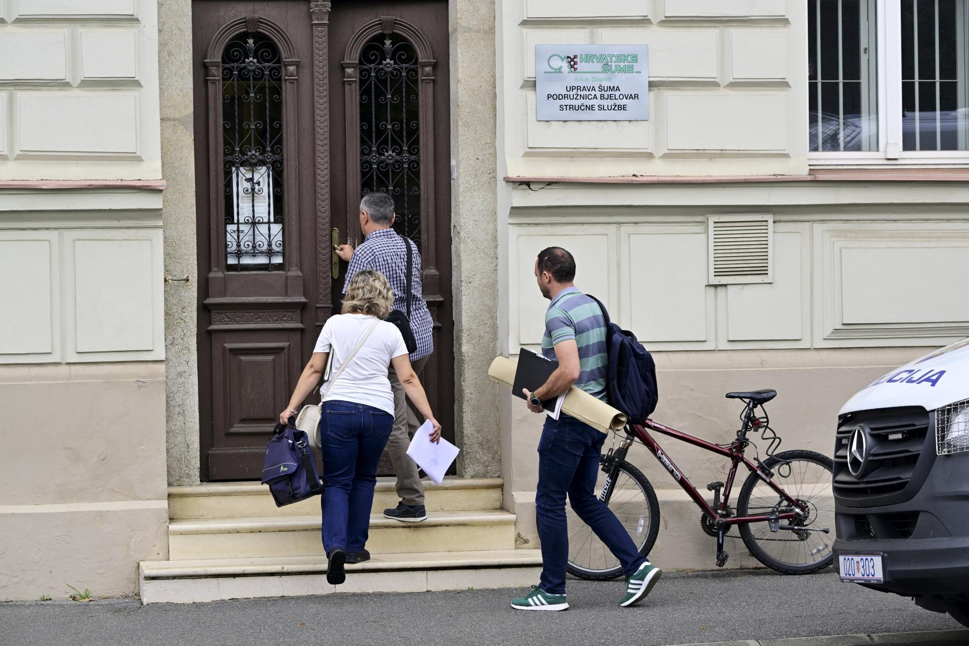 Zaposlenici Uprave šuma čitavo su jutro nervozno gledali kroz prozore dvije susjedne zgrade u kojima su uredi stručnih službi, no nisu htjeli otkrivati previše informacija o policijskim aktivnostima koje su se odvijale unutar njihovih zidova. Samo su nam kratko potvrdili da je policija kod njih stigla čim su prvi službenici stigli na posao i da se čekalo dolazak voditelja podružnice.