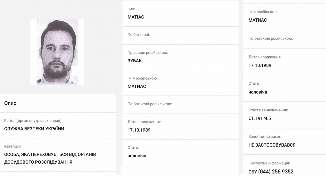 Podsjetimo, ukrajinsko Ministarstvo unutarnjih poslova je na službenoj web stranici u rubrici traženih osoba, navelo Matiasa Zubaka kao osobu koja se skriva od istražnih institucija ove zemlje.
