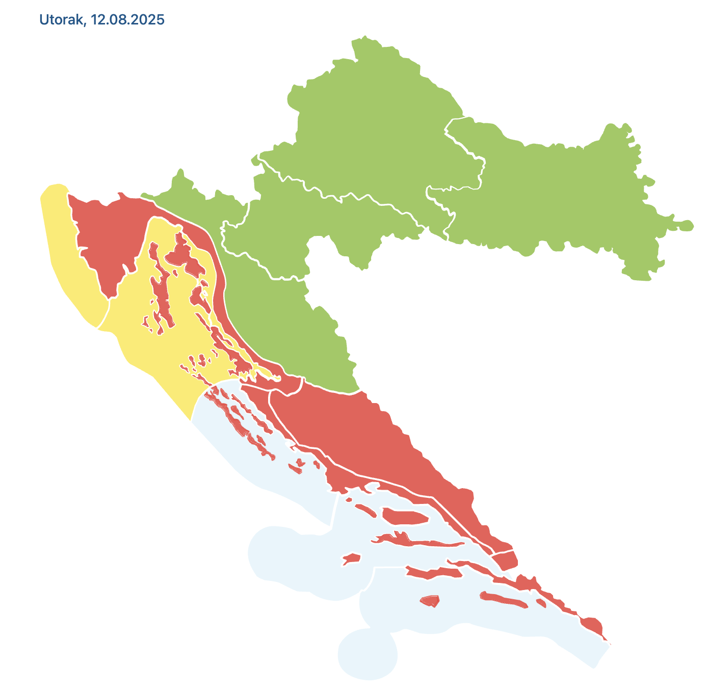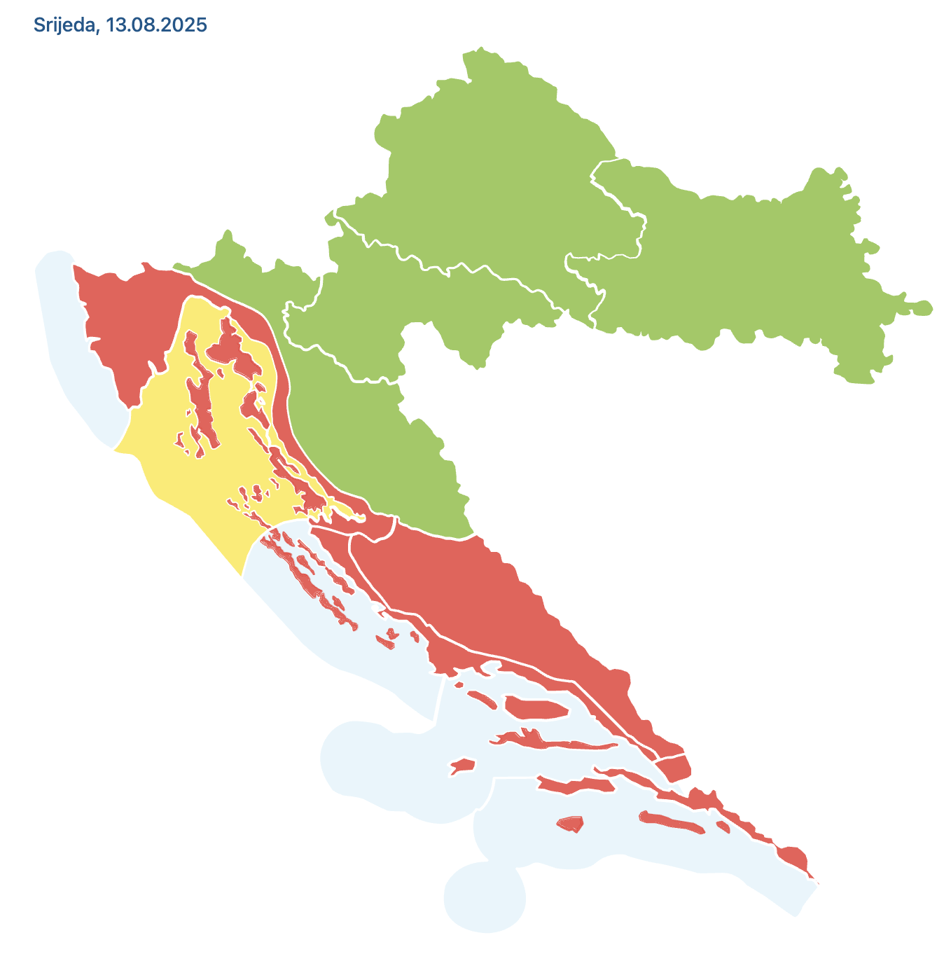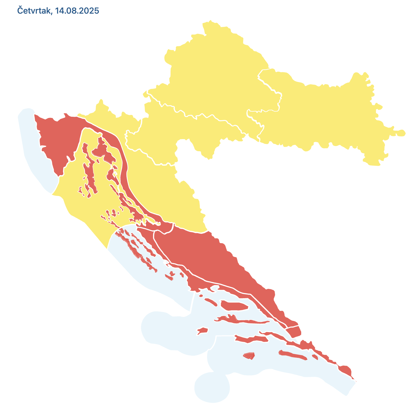 DHMZ je prethodno za te regije izdao crveni meteoalarm od ponedjeljka do četvrtka, a danas ga je produžio do subote, 16. kolovoza.