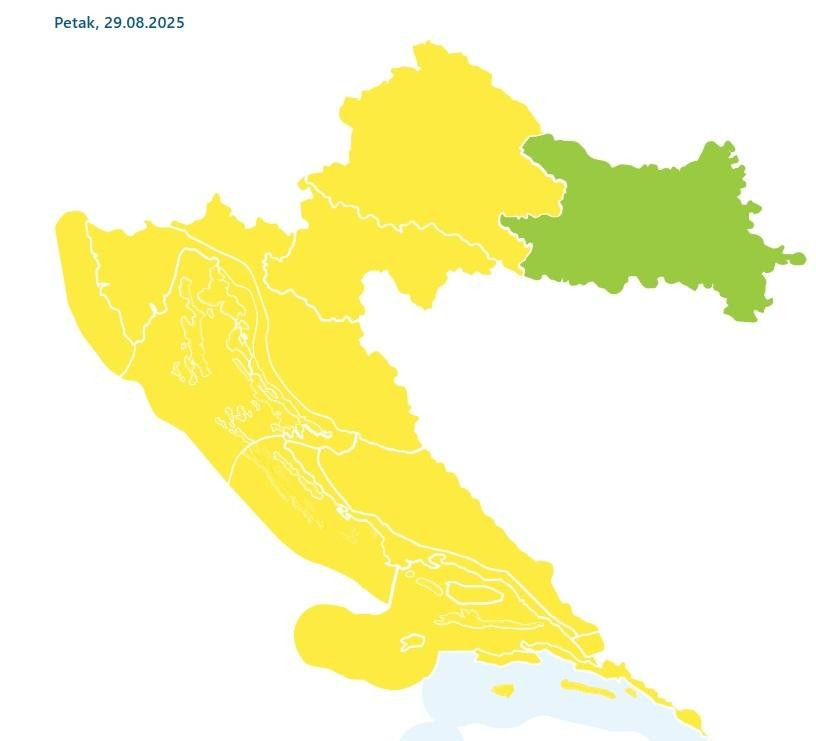 Za petak je DHMZ žuto upozorenje proširio i na zagrebačku, karlovačku, gospićku i kninsku regiju zbog mjestimice izraženijih pljuskova s grmljavinom.