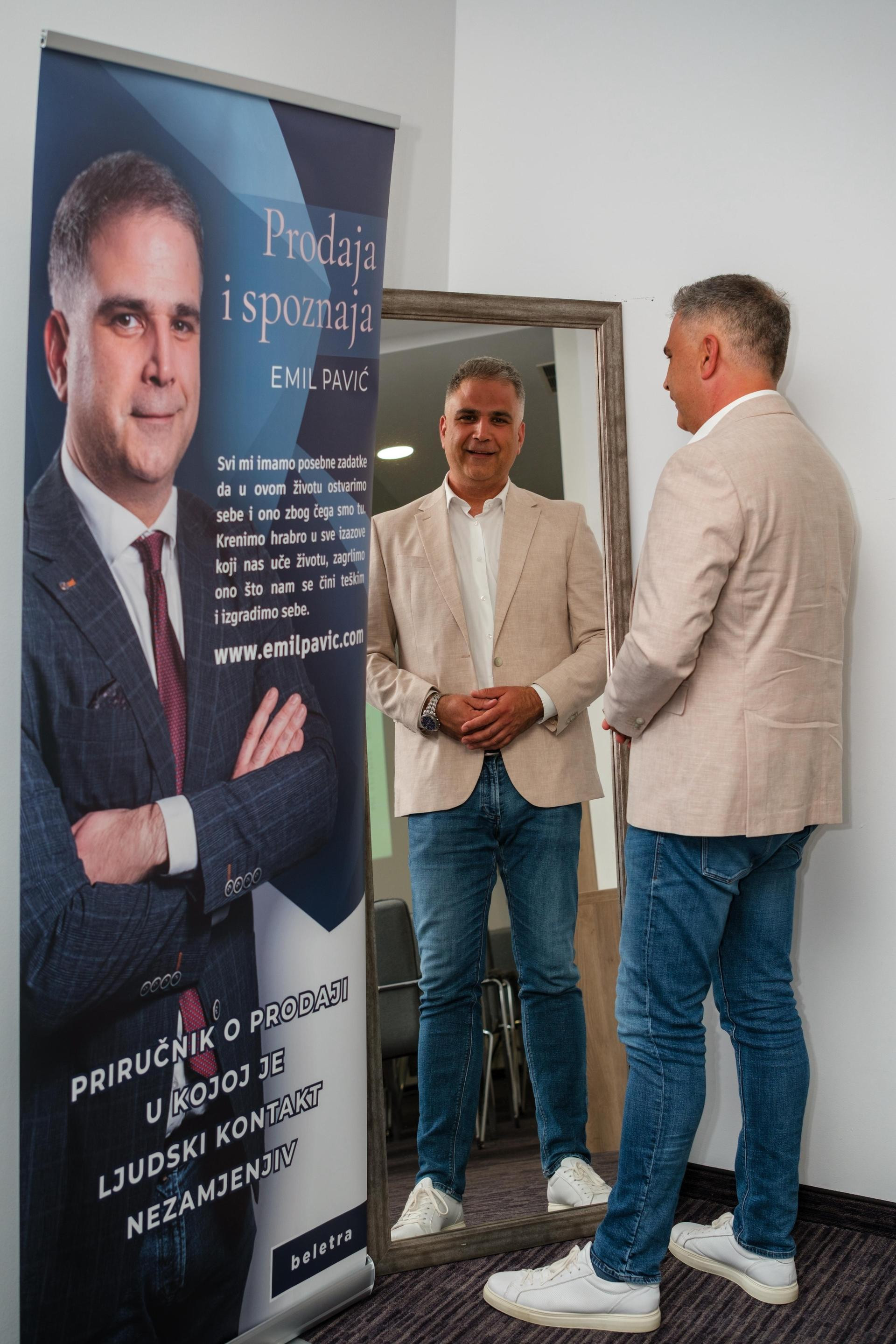 - Zapravo, ja sam bliže trideset godina u prodaji. Prvi novac zaradio sam davne 1992., na zimu, kada sam u vrlo lošim uvjetima radio na jednom skladištu gdje sam iz vreća gipsa teških 50 kg uzimao žlicom i stavljao u plastične, manje vrećice, od 1 kg. Kada bih prepakirao 20 vreća od 50 kg po 1 kg – dakle 1000 vrećica – tada bih zaradio 50 DM. Ispravak, zaradio bih da sam bio za sve plaćen – a nisam, dakle čak sam i tu dobio iskustvo – što to znači kada ti se ne plati sav tvoj rad i trud. Temperatura u skladištu bila je oko nule. Danas, kada se toga sjetim, sretan sam i ponosan. Sretan sam jer mi je ta rana mladost (radio sam sa samo 14 godina) donijela sve ono nakon. Želja za radom, svijest da se može i u tim nenormalnim uvjetima rata, hladnoće, siromaštva koje nas je okruživalo – da se sve to može. To iskustvo donijelo mi je poziciju da svi oni koji govore da je teško i da se ne može, vrlo vjerojatno nisu bili u mojem skladištu. Siguran sam da je ovo tek prva knjiga koju sam napisao, inspiracija je uvijek tu, ali kao i sve ostalo što je dobro, divno i što motivira, dolazi i s malo neugode i boli, padanjima i povratkom. “Kada je sve savršeno, stavi kamenčić u cipelu.”