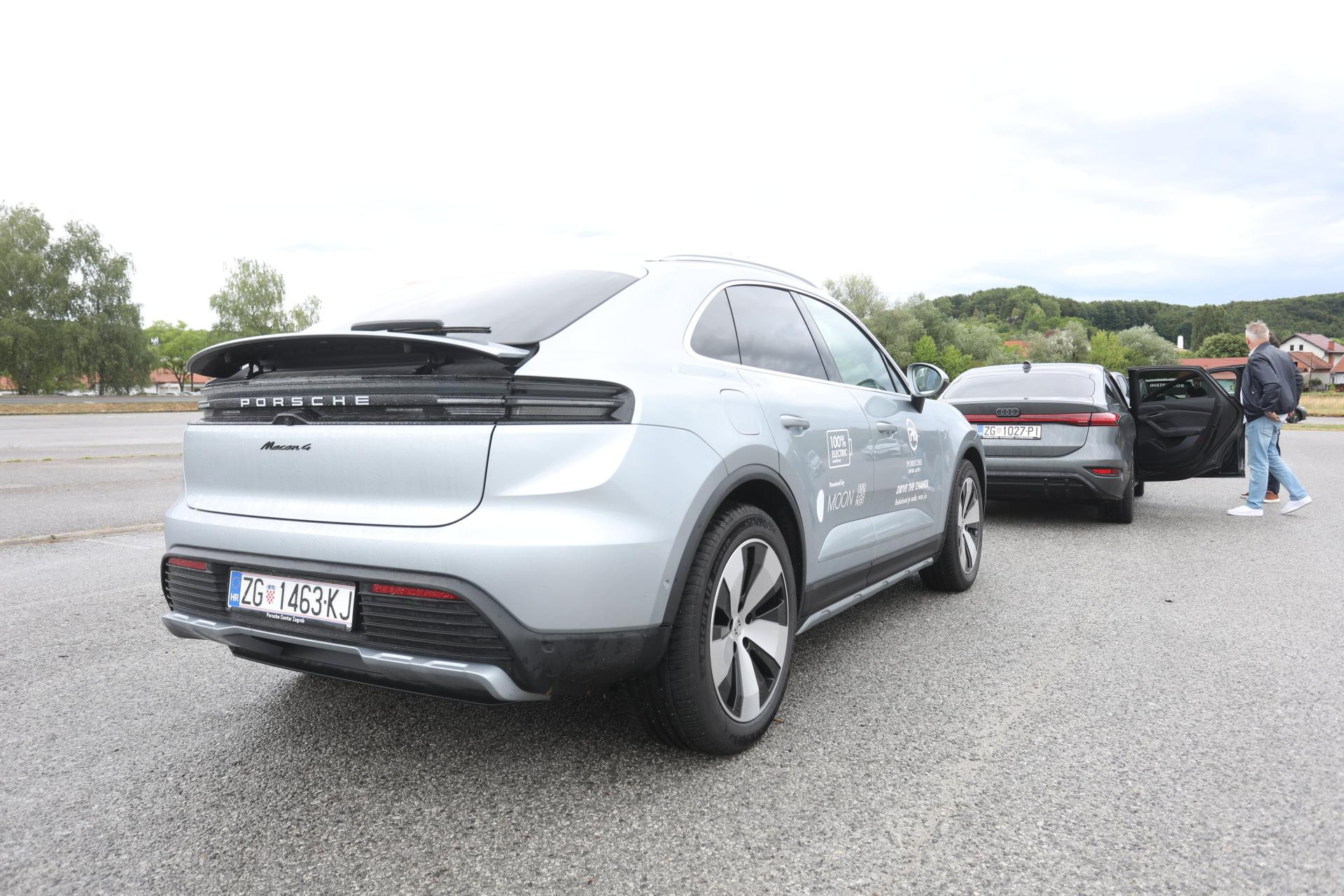 Kolonu je predvodila zvijezda dana - Porsche Taycan. Nakon njega išao je Audi Q6 e-Tron u kojemu je dan počela ekipa Jutarnjeg, zatim je slijedio sasvim novi CUPRA Tavascan, pa Porsche Macan, Audi A6 e-Tron, Volkswagen ID.7, Škoda Eniyac te Volkswagen ID.4.