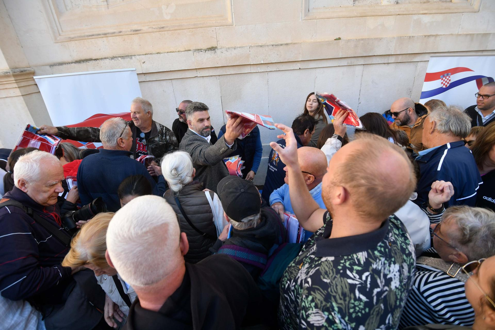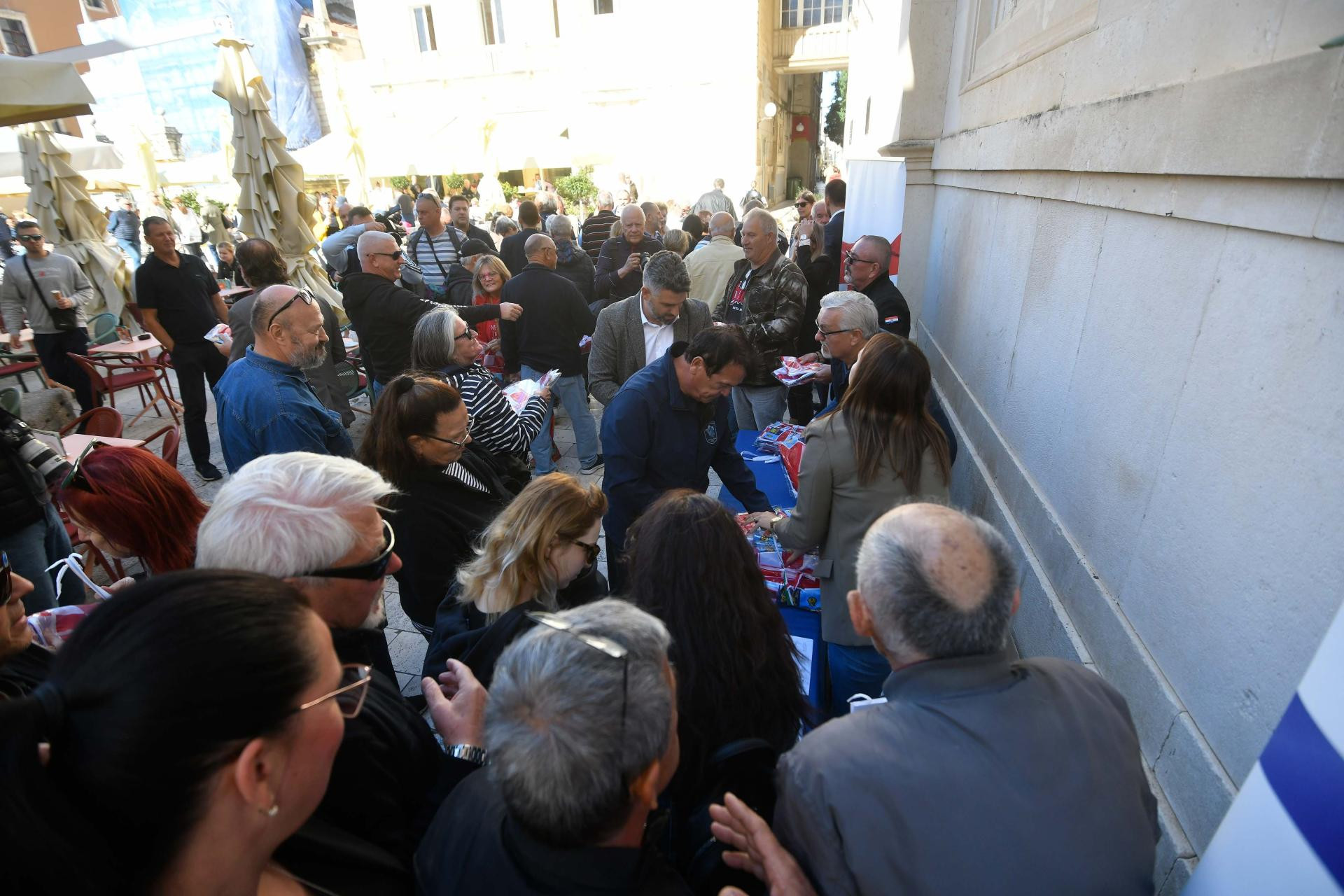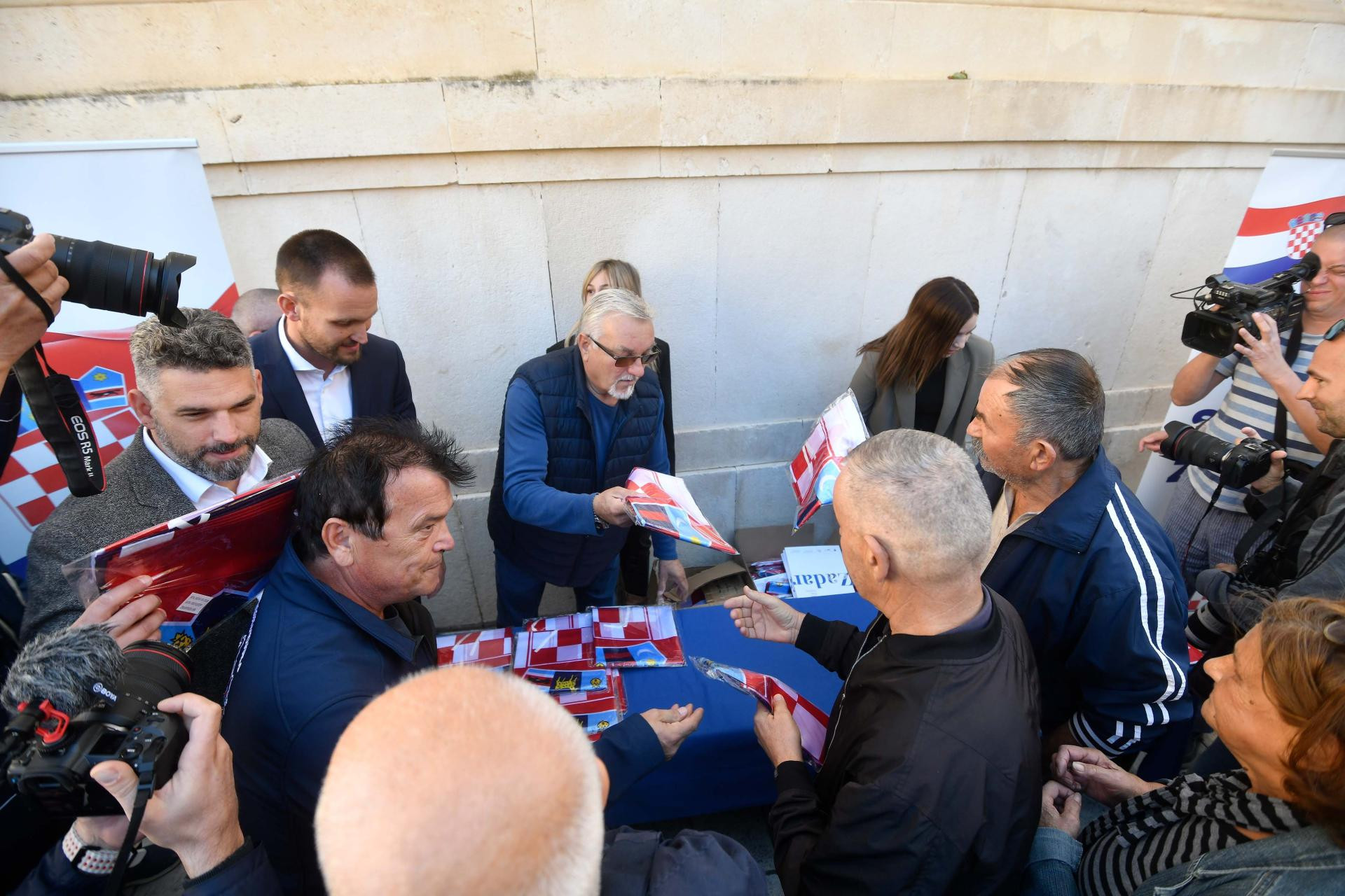 Zastave je uz gradonačelnika i članove udruga, a uz taktove Thompsona i ostalih domoljubnih pjesama, dijelio i zamjenik gradonačelnika Ante Ćurković. Na štand su navratili i brojni političari, među ostalim i zamjenik župana Robertino Dujela, županijski vijećnik Danijel Kotlar...