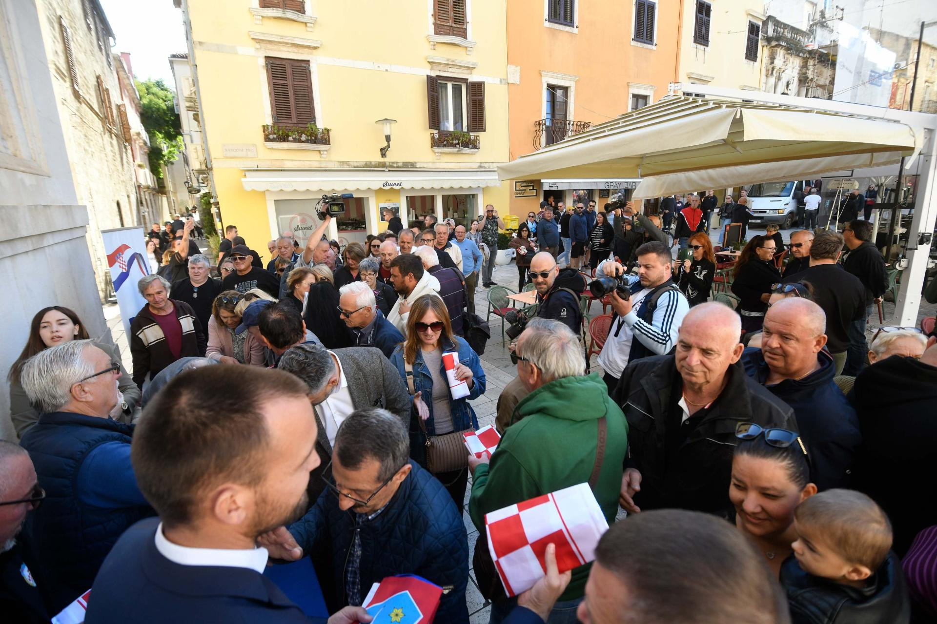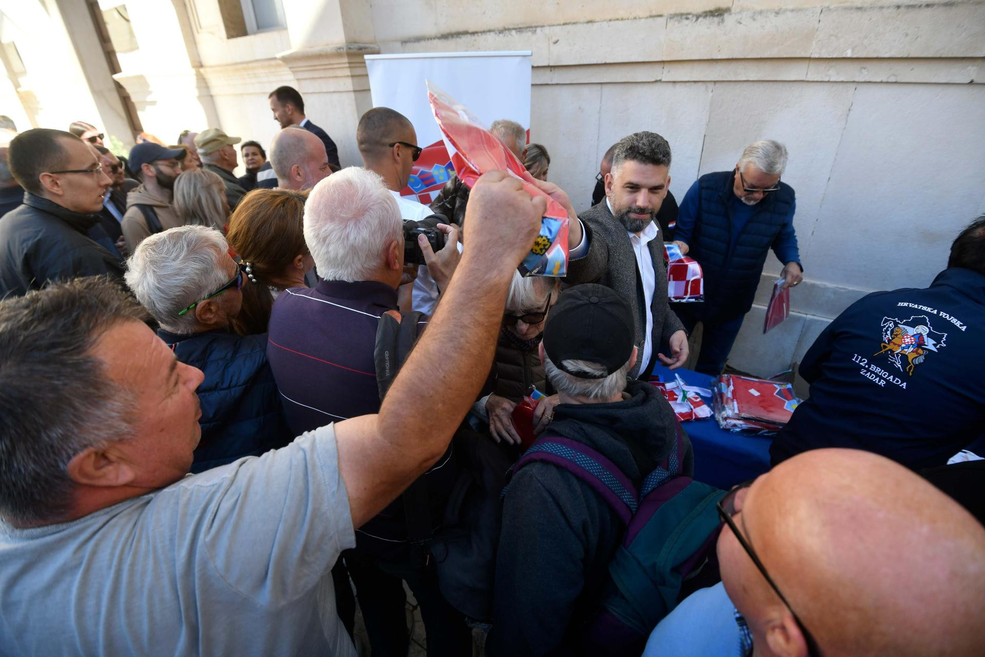 U manje od pola sata "planulo” je tisuću hrvatskih zastava koje je gradonačelnik Zadra Šime Erlić besplatno dijelio građanima ispred gradske uprave povodom Dana obrane Grada Zadra.