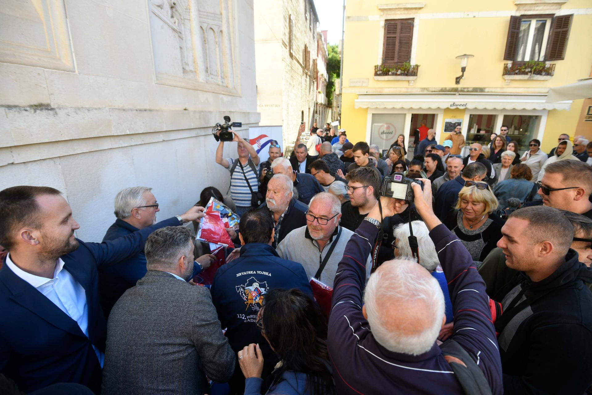 Djelatnici gradske uprave, koji su ovom prigodom poslužili kao radna snaga, iznosili su kutije jednu za drugom. Brže su se grabile zastave nego što su se kutije uspijevali iznijeti, piše Zadarski.hr.