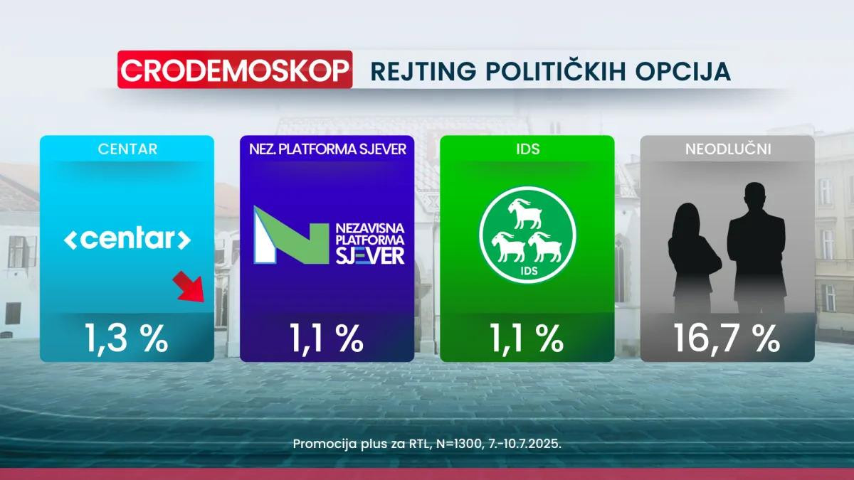 RTL je objavio novi Crodemoskop - istraživanje rejtinga stranaka i političara.