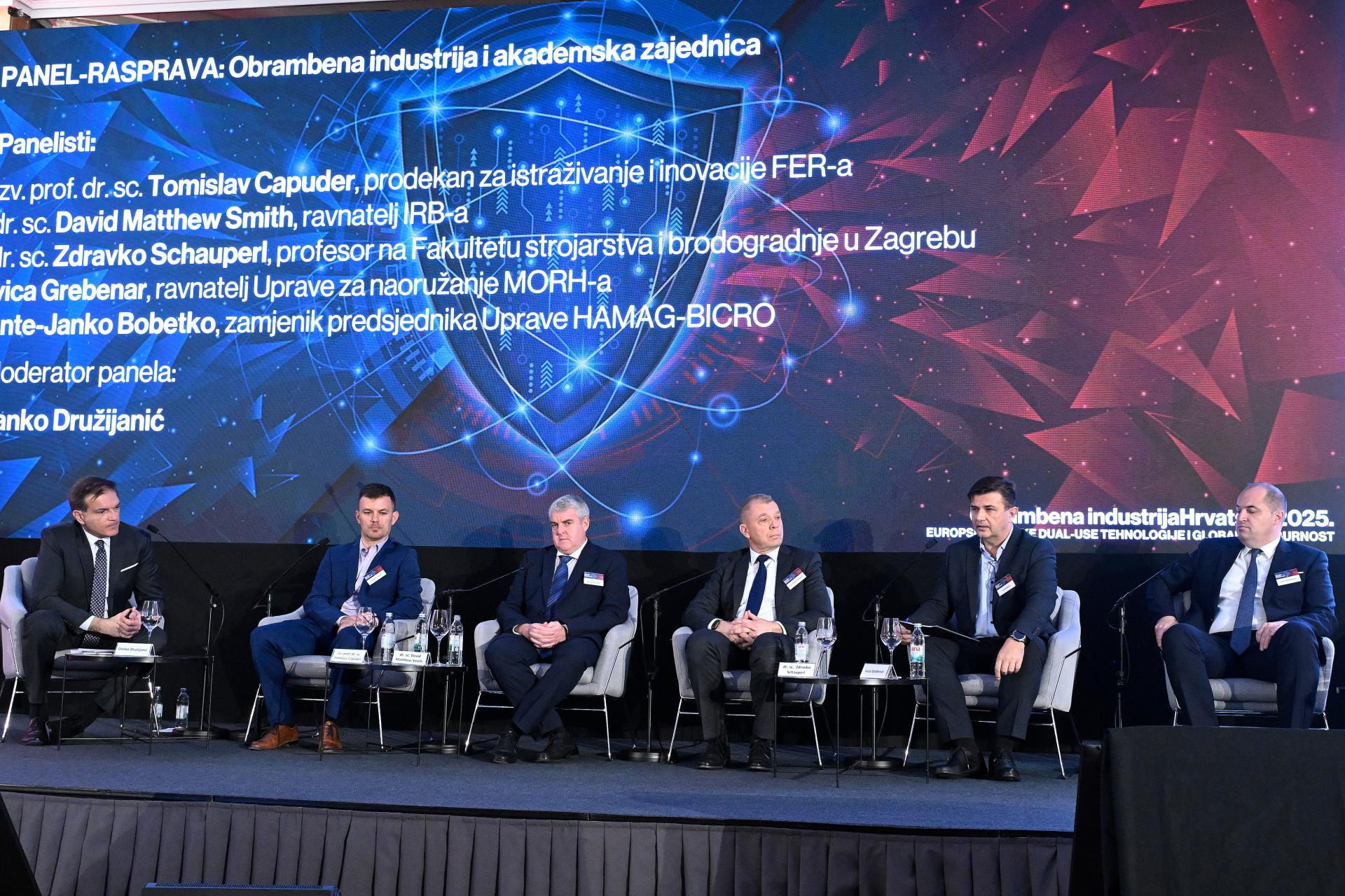 U trećem panelu konferenciju u Westinu pod nazivom ‘Obrambena industrija i akademska zajednica‘ sudjeluju prodekan za istraživanje i inovacije zagrebačkog Fakulteta elektrotehnike i računarstva Tomislav Capuder, ravnatelj Instituta Ruđer Bošković (IRB) David Matthew Smith, sveučilišni profesor Fakulteta strojarstva i brodogradnje (FSB) u Zagrebu Zdravko Schauperl, ravnatelj Uprave za naoružanje Ministarstva obrane Ivica Grebenar i zamjenik predsjednika Uprave državne agencije HAMAG-BICRO Ante-Janko Bobetko.