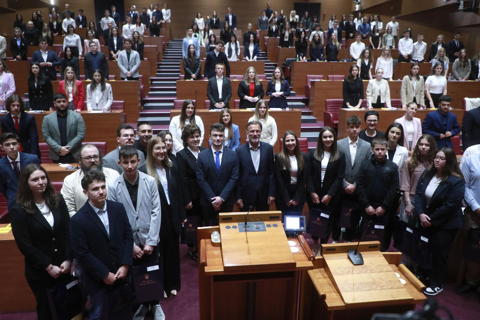 „Jer kako kaže pjesma, ti si rođen sine u vrijeme slobode, treba znati da se za tu slobodu, za mir, demokraciju treba izboriti, čuvati, da nije dana sama po sebi“, rekao je Jandroković koji je učenicima osnovnih i srednjih škola s najboljim rezultatima na ovogodišnjem kvizu „Koliko poznaješ Hrvatski sabor“ i njihovim mentorima, uručio nagrade.
