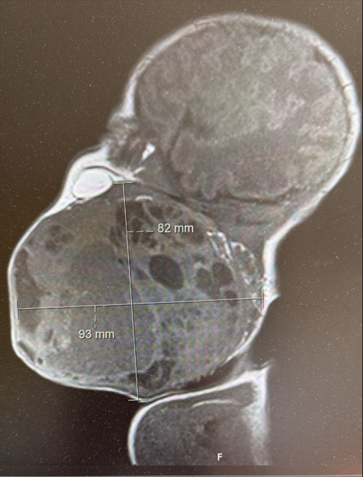 Prema nalazima magnetske rezonancije prije poroda, tumor je bio gotovo veličine djetetove glave i zatvarao je dišne puteve. Dijete bi bilo životno ugroženo ako bi se rodilo normalnim putem, stoga je tim liječnika morao razraditi i biti spreman na nekoliko varijanti liječenja, a na kraju je profunkcionirala prva opcija.