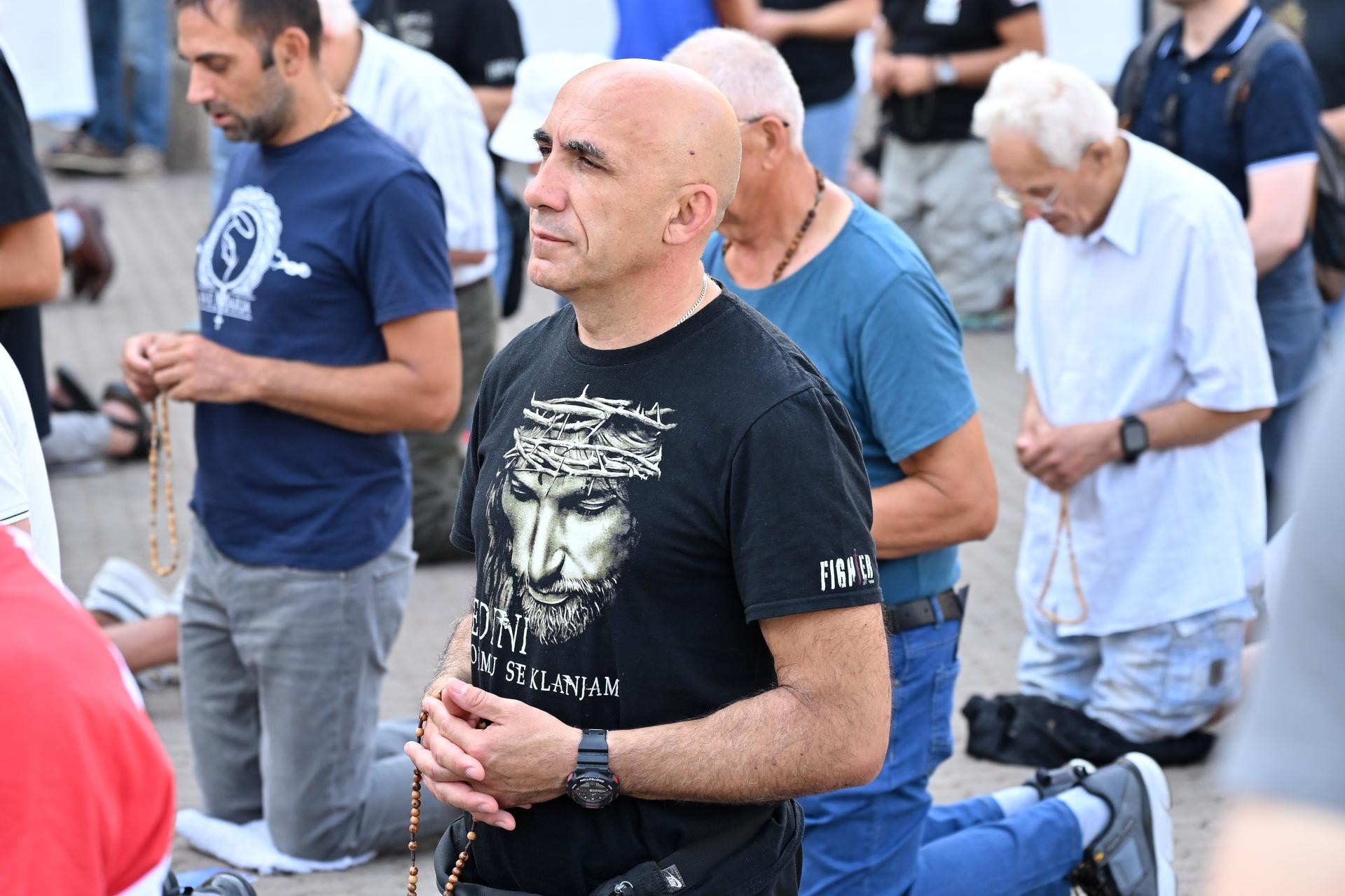 Tek je dvoje molitelja odjenulo majice na kojima piše ‘Ako ne znaš što je bilo‘ i ‘Tomislavgrad‘, a u sličnim se majicama pojavilo još toliko građana koji su došli moliteljima iskazati podršku.