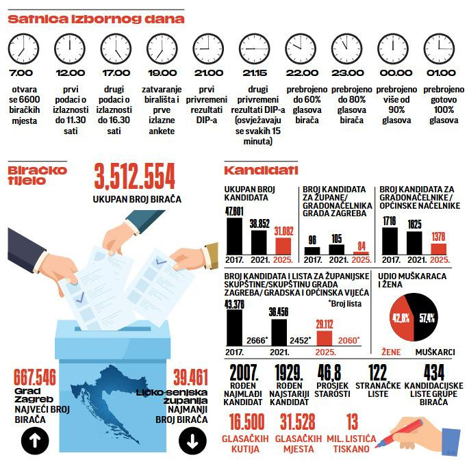 U nedjelju pravo glasa ima nešto više od 3,5 milijuna hrvatskih državljana, koji će od 7 do 19 sati svoj glas moći dati na 31.528 glasačkih mjesta.
