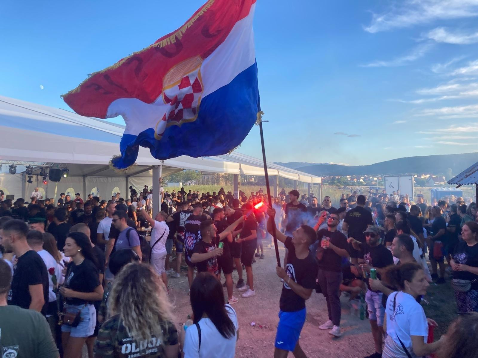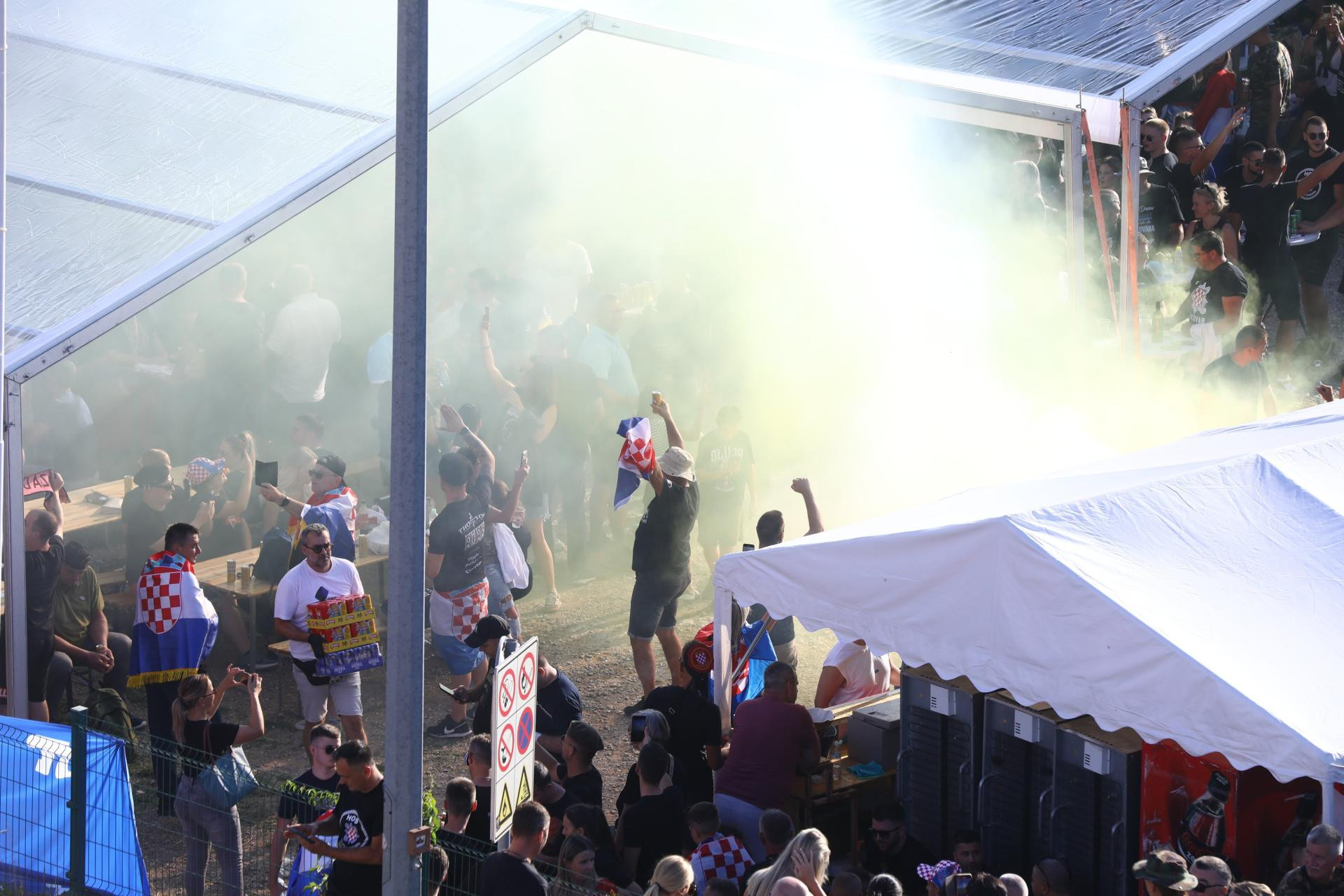 Sve je veća strka oko sinjskog Hipodroma kako se približava početak koncerta Marka Perkovića Thompsona. Ima još par sati do domoljubnog spektakla, ograde su fiksne i nepremostive pa je zato van njih poprilična gužva. U blizini su se stvorila i dva nevjerojatno dugačka reda: jedan za zahod na benzinskoj postaji, a drugi za ćevape.