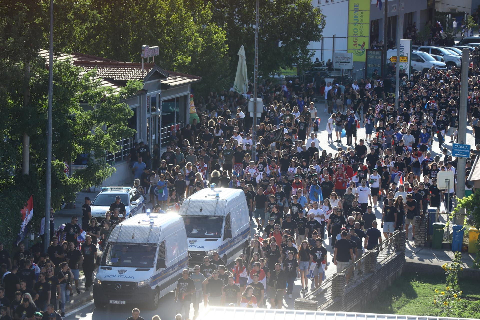 Međutim, valja reći da su dosta pasivni, ne diraju one koji u prolazu pjevuše ‘Gustu maglu‘, a ne smetaju im ni sporni ustaški natpisi na majicama, kapama i zastavama.