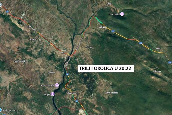 Gužve su naravno i na prilazima Sinju i Trilju. Prema posljednjim podacima, najveće prokmetno opterećenje je na državnoj cesti D1 od Kukuzovca preko Brnaza prema Sinju. Mnogi ljudi automobile ostavljaju već u Kukuzovcu i pješače prema Sinju.