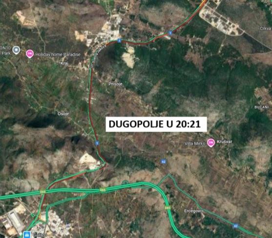 Kolone se stvaraju još do Dugopolja, sudeći po Google Mapsu. Evo stanja u 20 sati i 20 minuta...