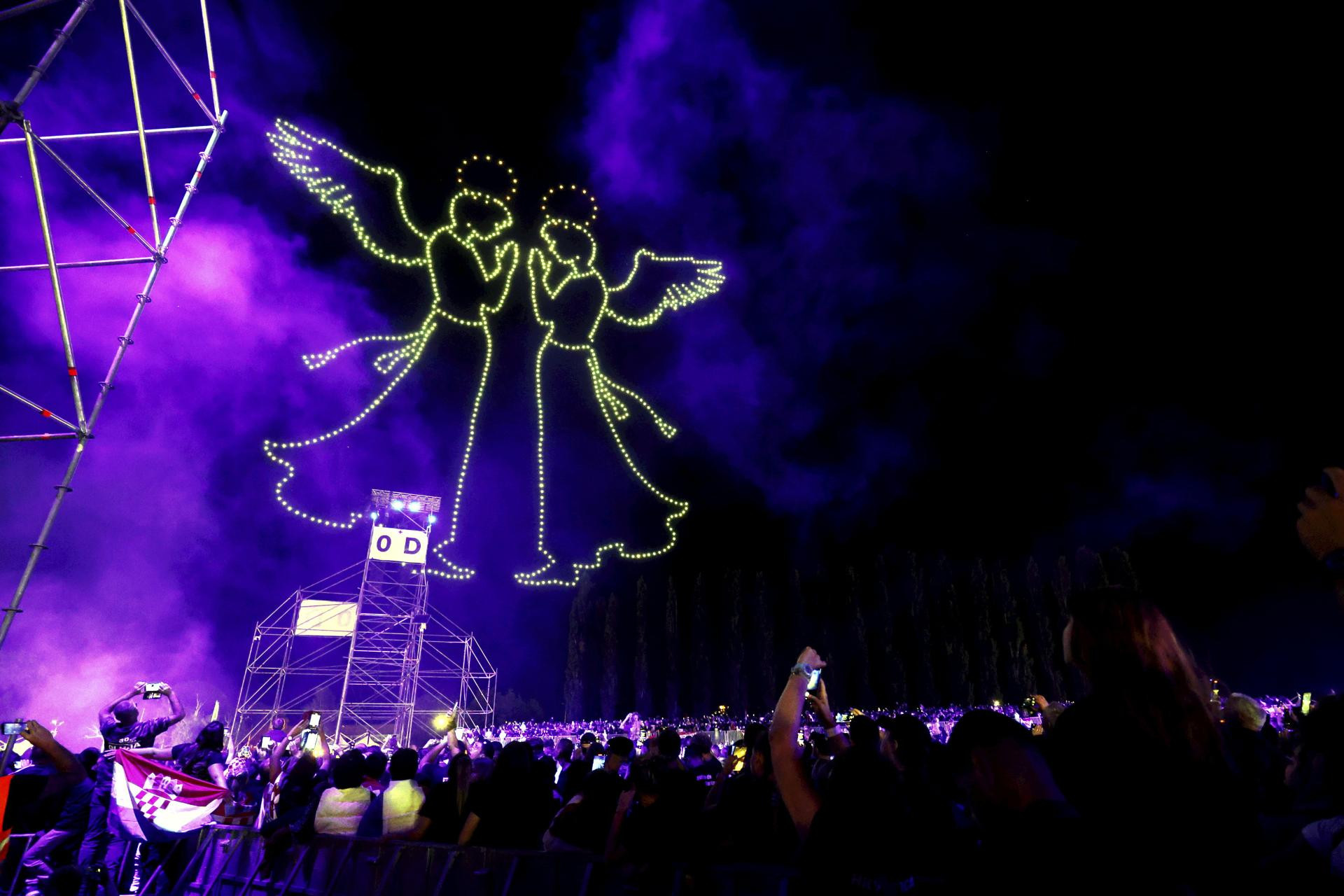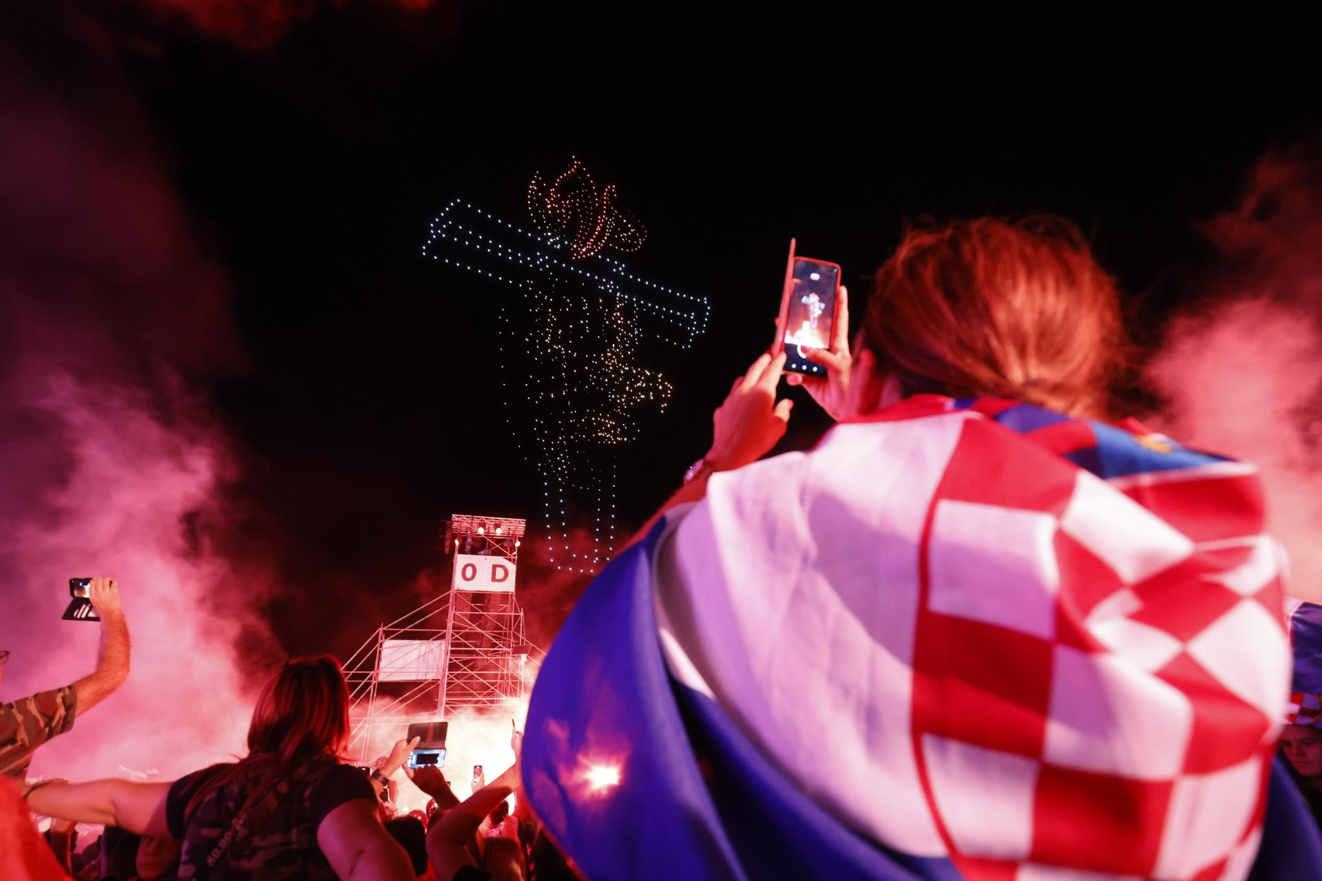 Na pjesmu ‘Neću izdat ja‘ krenuli su svijetleći dronovi‘. Publika je u ekstazi - zazivaju se anđeli, Majka Nebeska, Krist Spasitelj...