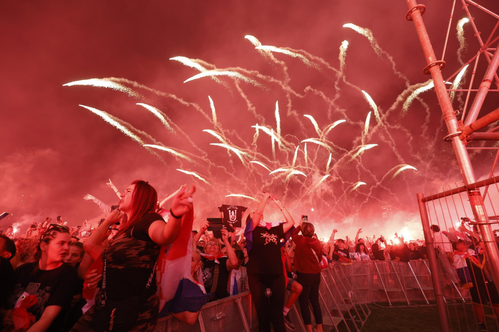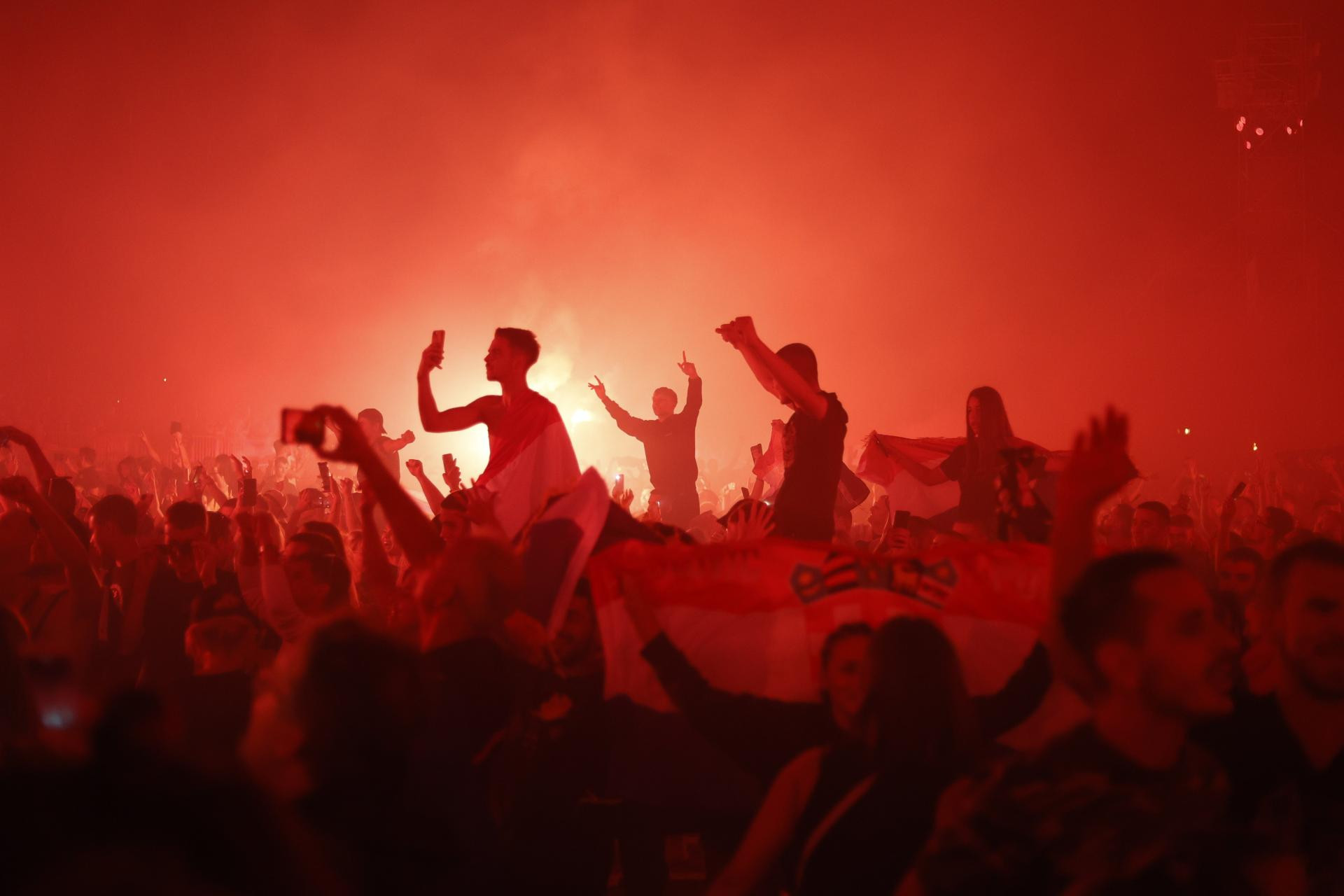 No, publika se zabavlja i bez Thompsona, a Hipodromom se ori ‘Moja domovina‘. Zapalile su se i bengalke u iščekivanju početka koncerta, piše Slobodna Dalmacija.