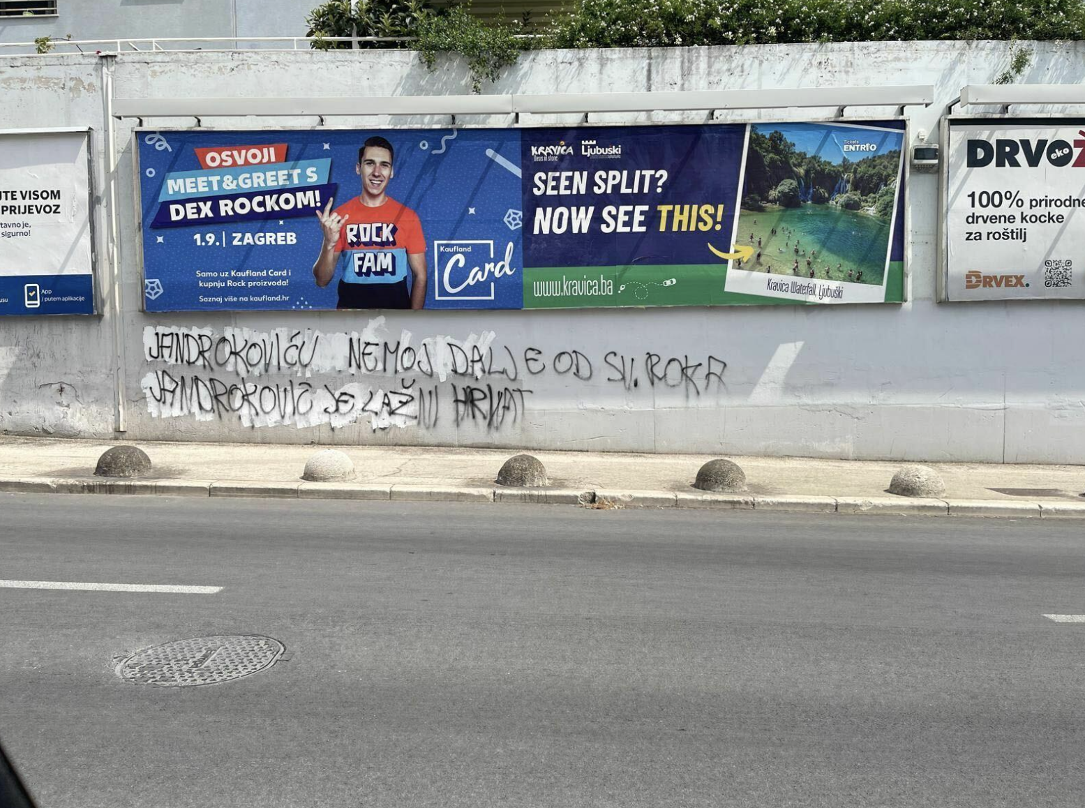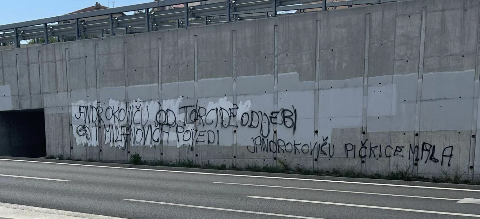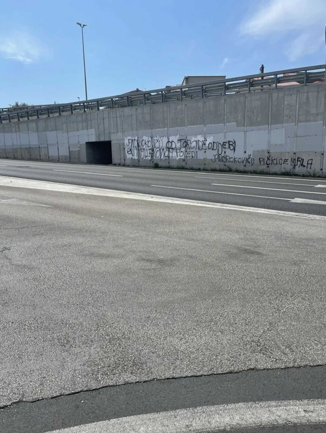 Na ulazu u Split osvanuo je niz uvredljivih grafita usmjerenih protiv predsjednika Sabora Gordana Jandrokovića, s porukama poput „Jandroković p**** mala“, „Jandrokoviću ne idi dalje Sv. Roka“ i „Jandroković je lažni Hrvat“, piše Slobodna Dalmacija.