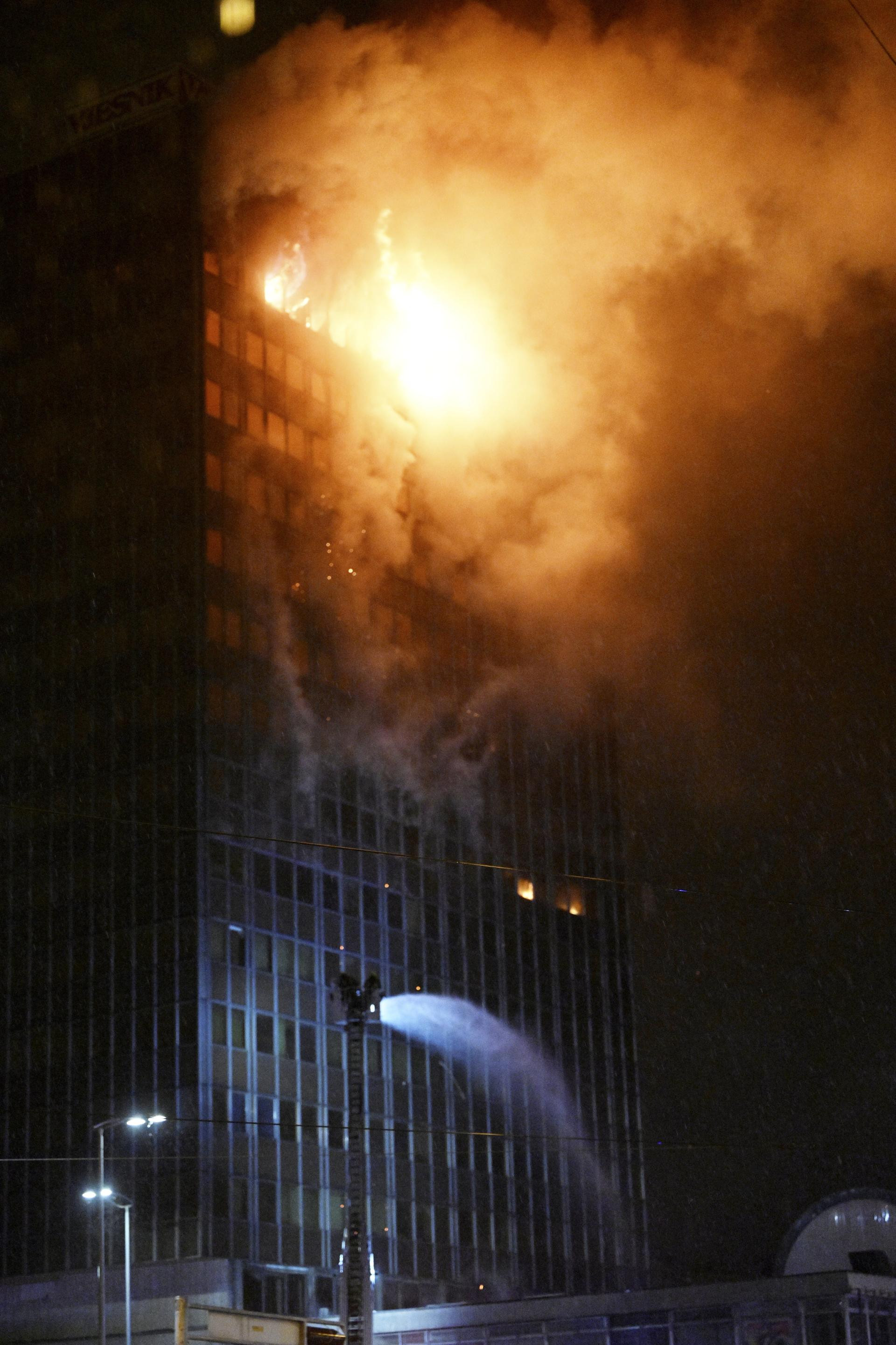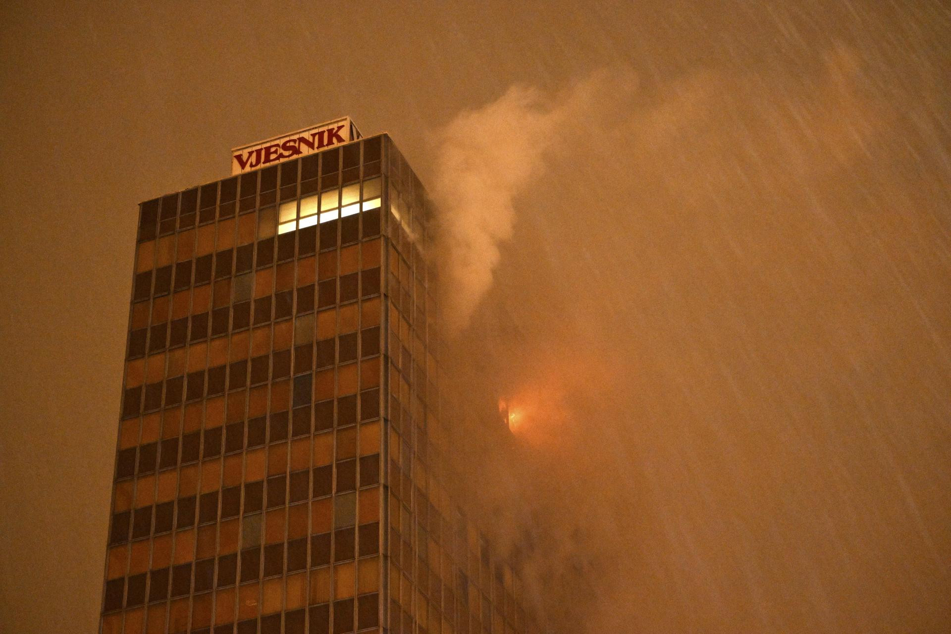 Nešto poslije 22 sata u ponedjeljak navečer, kultni Vjesnikov neboder zahvatila je ogromna buktinja. Prema posljednjim informacijama, na terenu su sve raspoložive postaje u Zagrebu. Sa nebodera padaju vatrene krhotine. Kako javlja Ravnateljstvo civilne zaštite zatvoren je plin i isključena električna energija za cijeli objekt. Kritični su šesti, deveti i dvanaesti kat. Policija je kompletno blokirala križanje i tjeraju ljude od nebodera. Naši fotoreporteri su na licu mjesta, evo što su snimili.