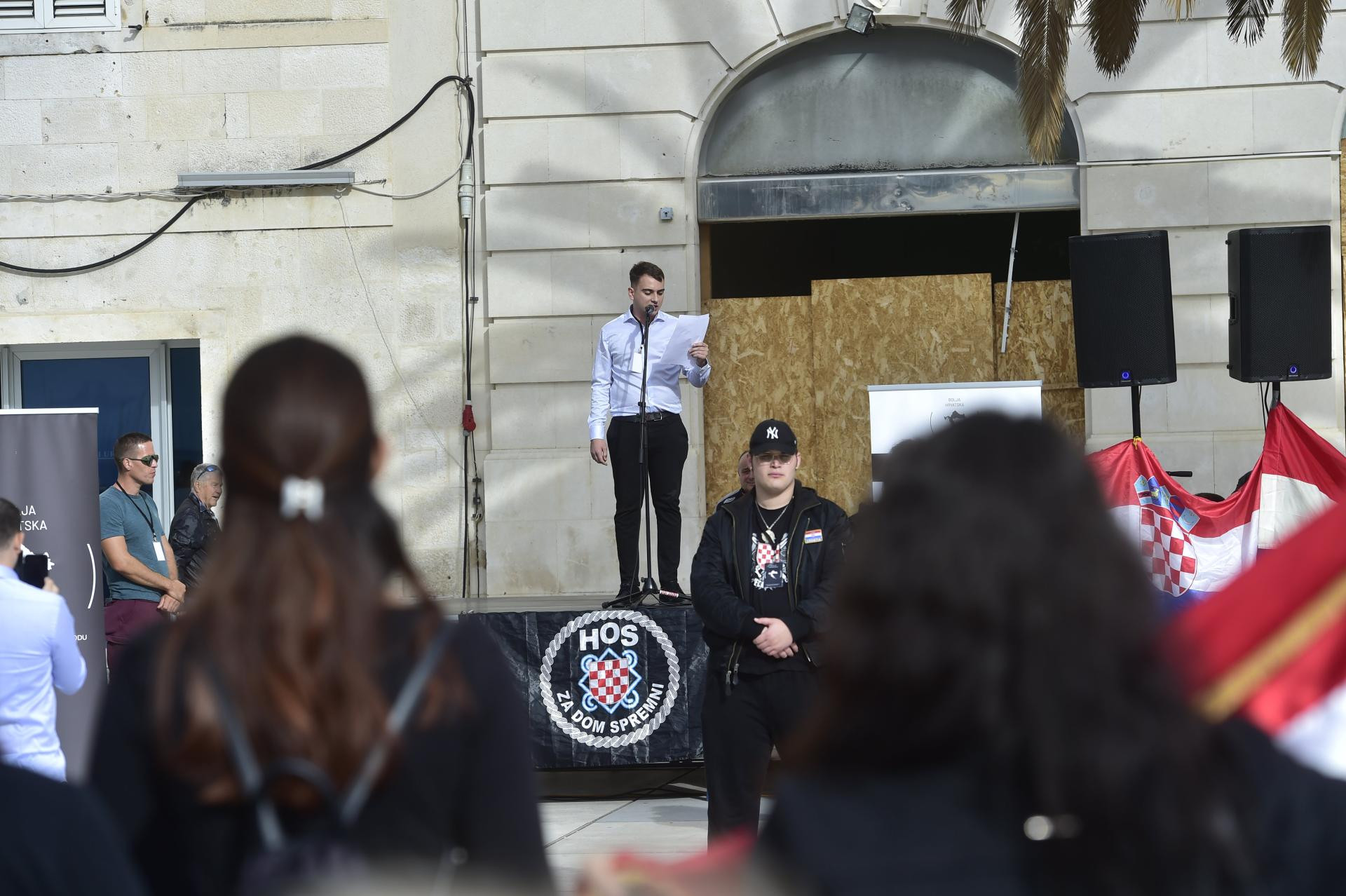 No, za razliku od zagrebačkog prosvjeda - koji je obilovao porukama o tzv. zamjeni stanovništva strancima, zahtjevima za ograničavanje uvoza stranih radnika, pa i bizarnim apelima da se u zagrebačkim tramvajima ukinu obavijesti na engleskom jeziku jer se time zatiru hrvatska kultura i jezik - organizatori su u nedjelju u Splitu zaoštrili retoriku i iznijeli niz problematičnih poruka.