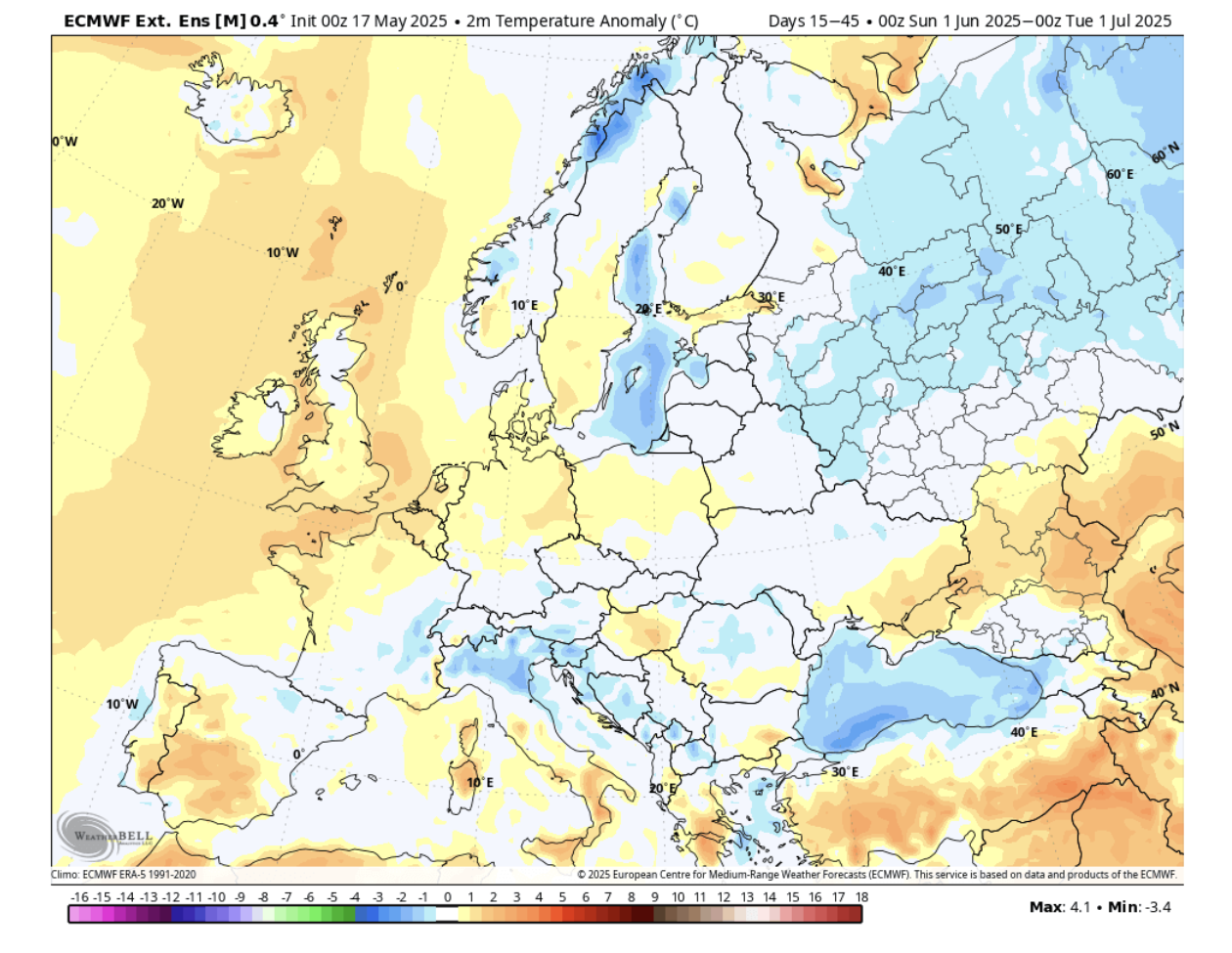 Počevši s lipnjem, prognoza prema ECMWF modelu pokazuje područje visokog tlaka nad sjevernim Atlantikom, s mogućim proširenjem prema sjeverozapadnoj Europi. Prognoziraju toplije vrijeme od prosjeka nad sjeverozapadnim i južnim dijelovima. Središnji i sjeveroistočni dijelovi imat će normalne, pa čak i nešto niže temperature od uobičajenih za lipanj. Prognoza oborina također pokazuje sušniji obrazac, piše SWE.