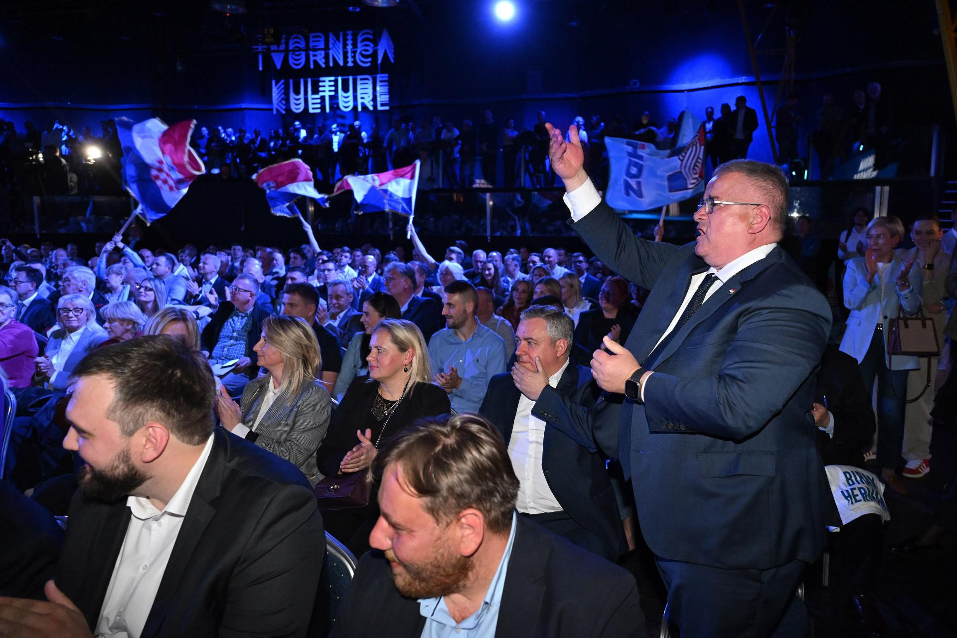 A zvijezda HDZ-ovog skupa, Mislav Herman održao je zaključni govor u utočištu Tomislava Tomaševića, kako je Herman nazvao Tvornicu kulture.