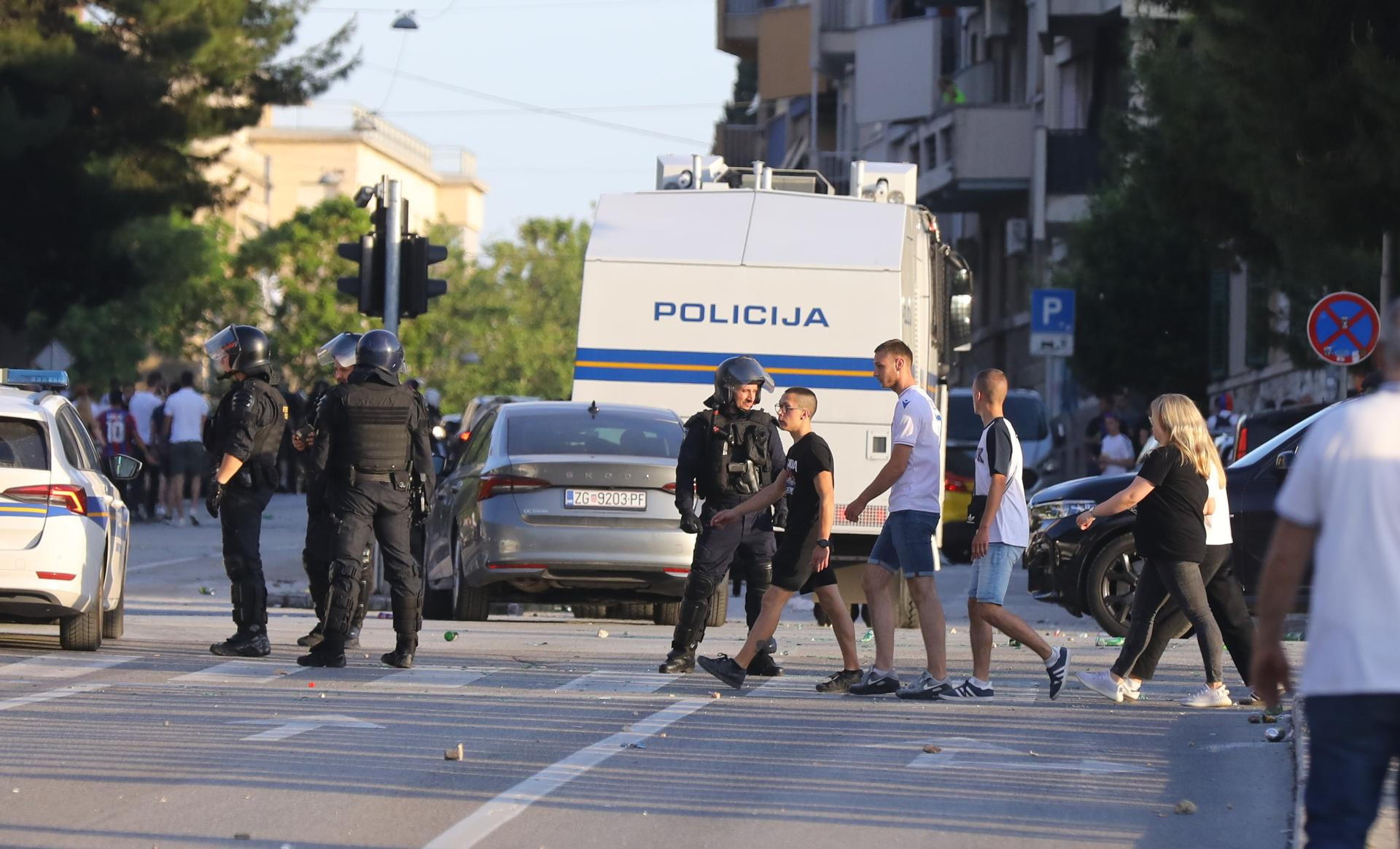 Kako je krenulo jutros u 9 sati masovnom tučnjavom Torcide i bad Blue Boysa na Pujankama, nastavilo se u Splitu neredima na stadionu i van njega nakon utakmice. Huligani su napali policajce, gađali ih bocama i kamenjem te su jednog i ozlijedili pa mu je pružena liječnička pomoć na licu mjesta, a na teren su izašla i vozila Hitne pomoći, piše Slobodna Dalmacija.