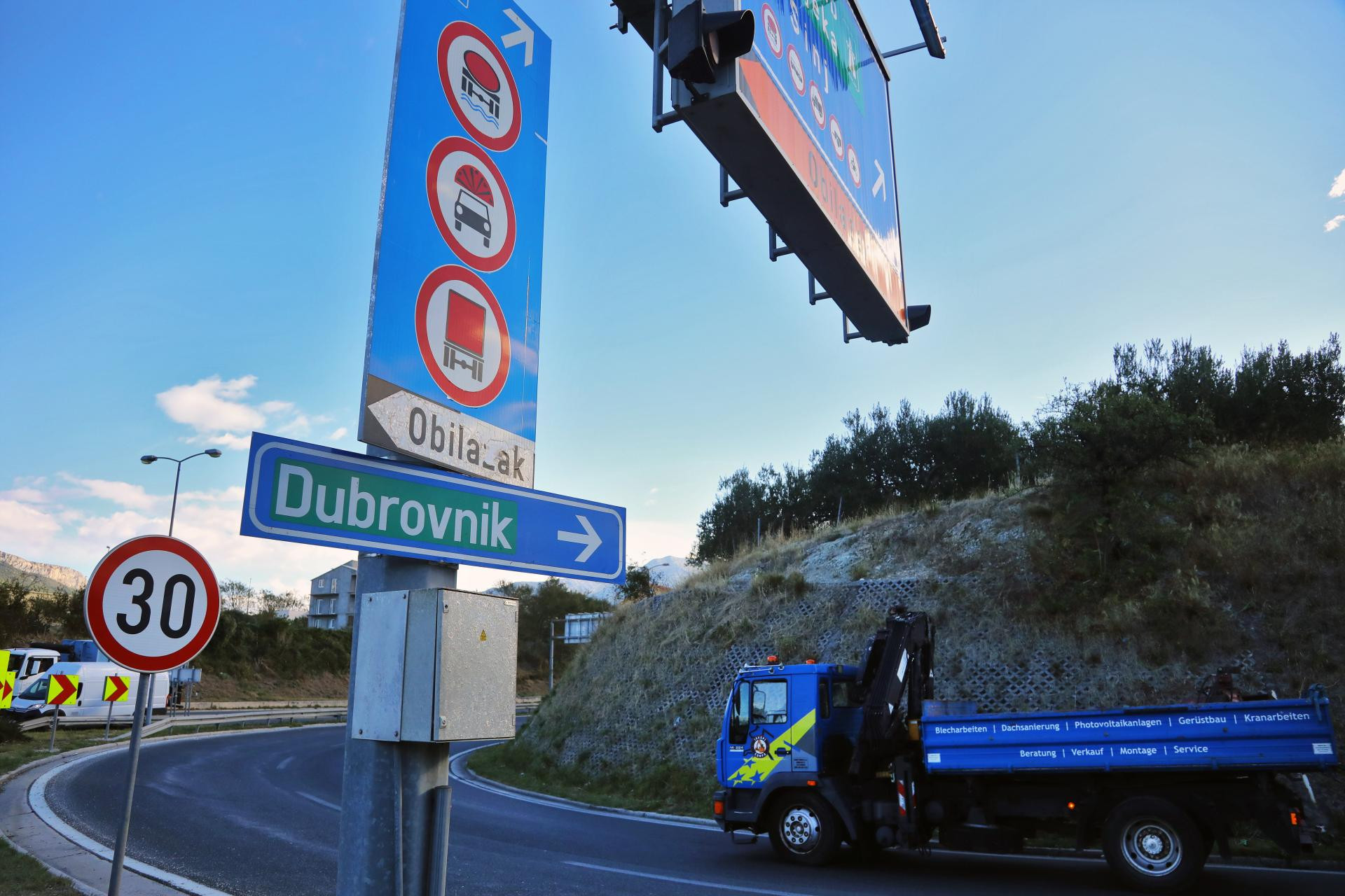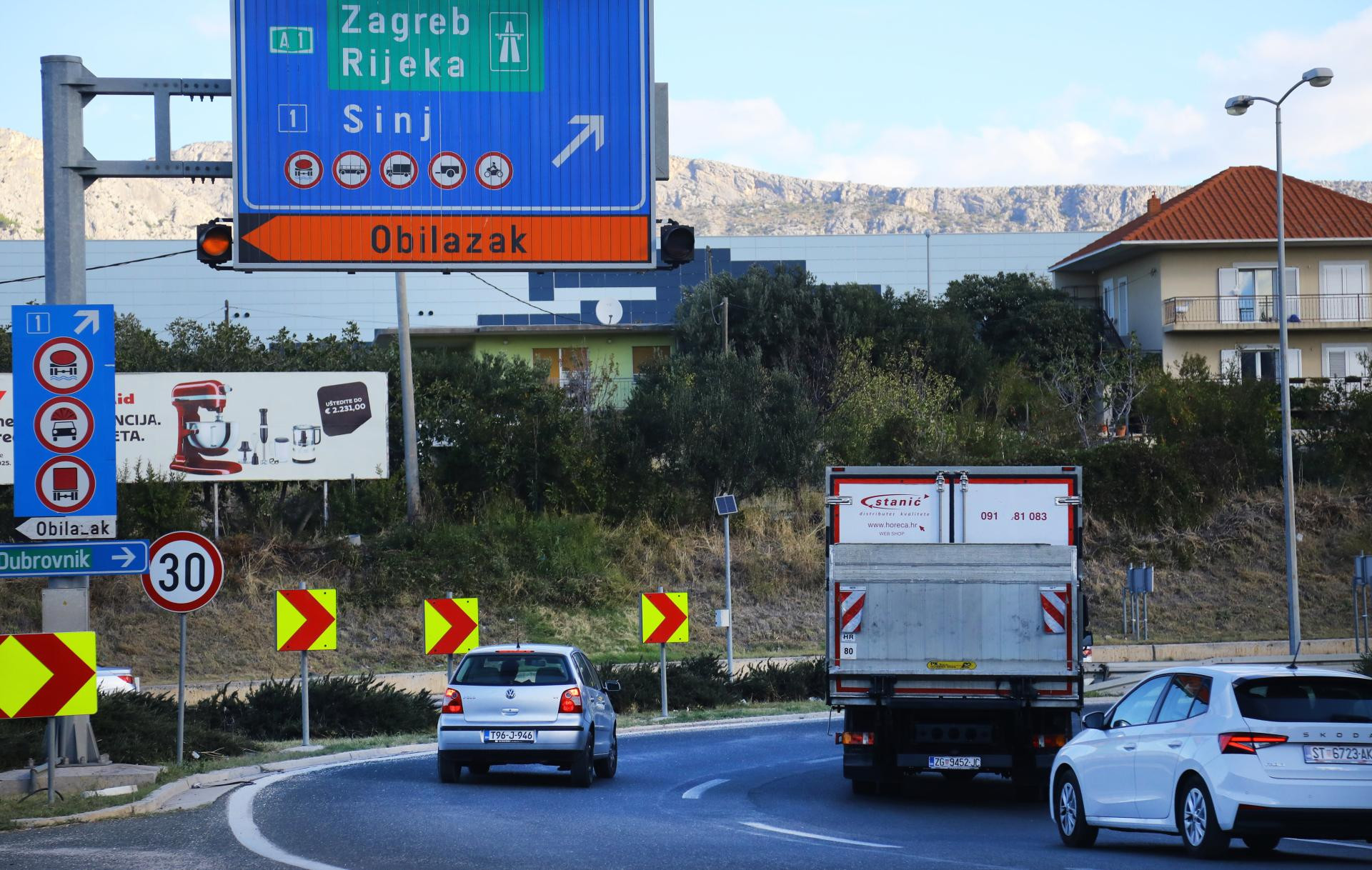 Autocesta A1 Zagreb - Split - Dubrovnik je zbog jakog vjetra između čvorova Sveti Rok i Posedarje zatvorena za sve skupine vozila. Obilazak za osobna vozila je čvor Zadar istok - DC27 Karin - Obrovac - DC50 Gračac - čvor Sveti Rok, a za ostale skupine čvor Benkovac (A1) - Kistanje (DC59) - Knin - DC1 - Gračac - DC50 - čvor Sveti Rok.
