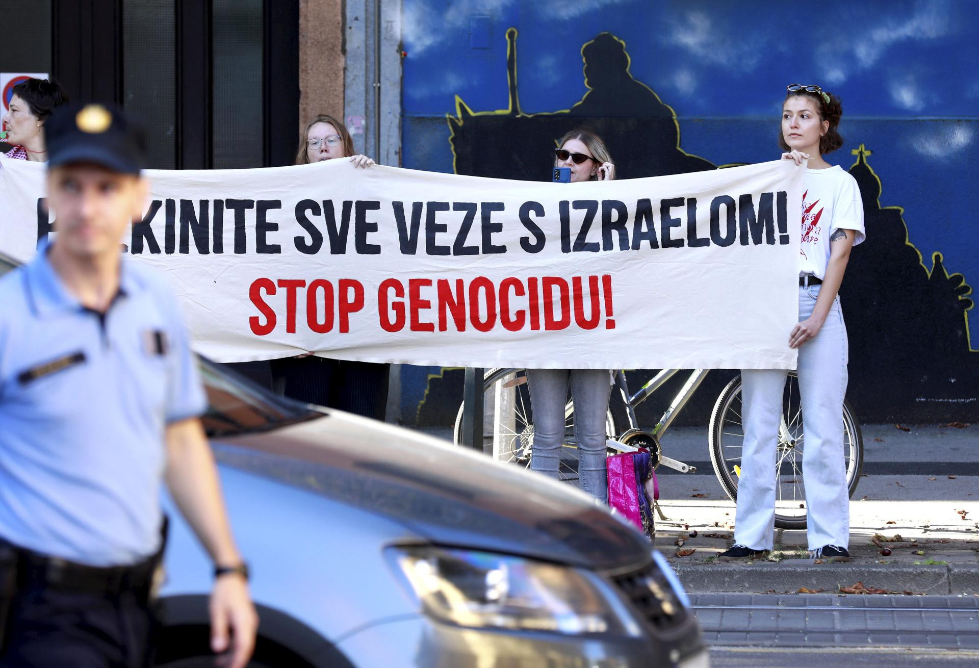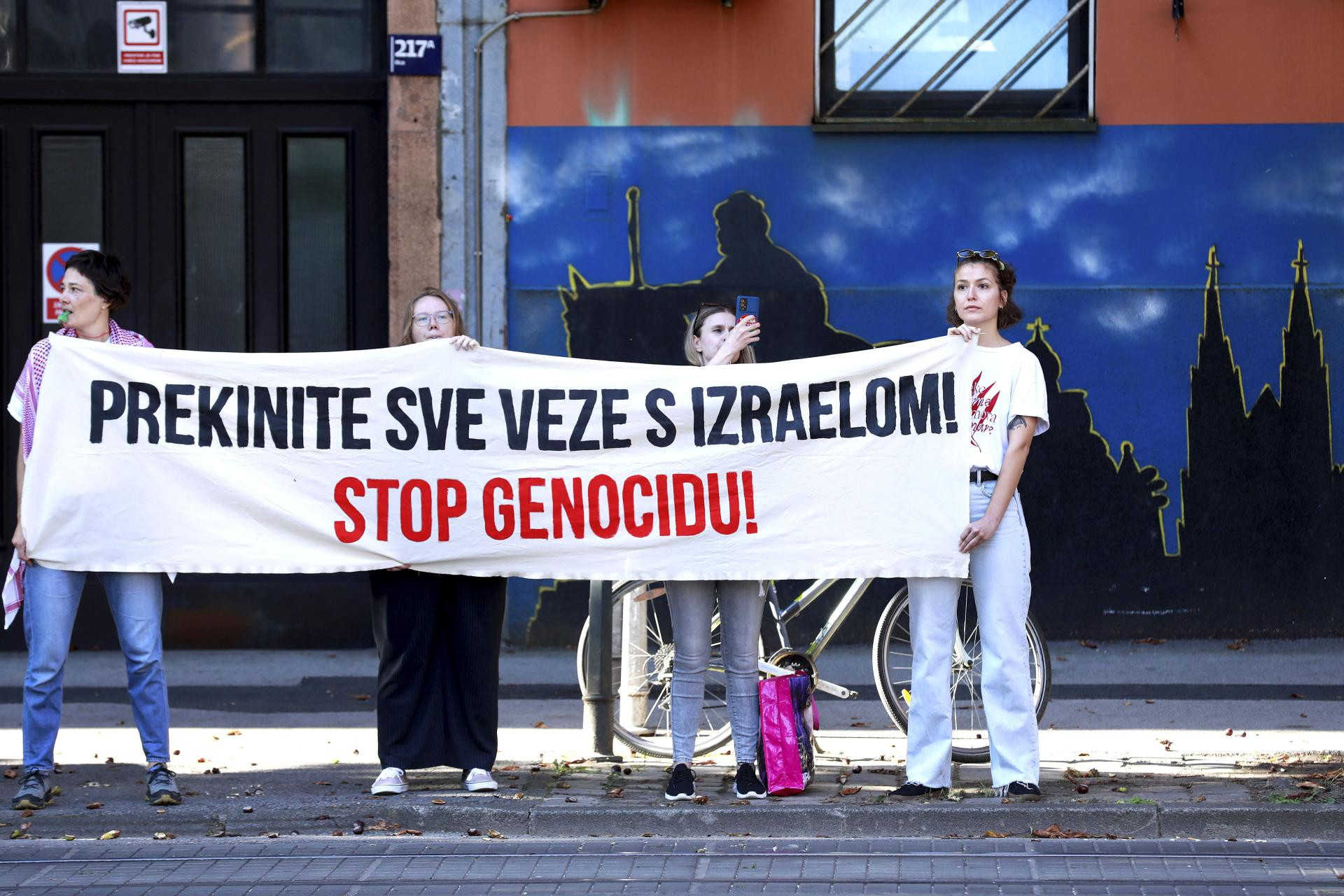 Ispred zgrade Sabora, uoči početka današnje sjednice, okupila se nekolicina prosvjednika s transparentom na kojem piše: „Prekinite sve veze s Izraelom! Stop genocidu.“