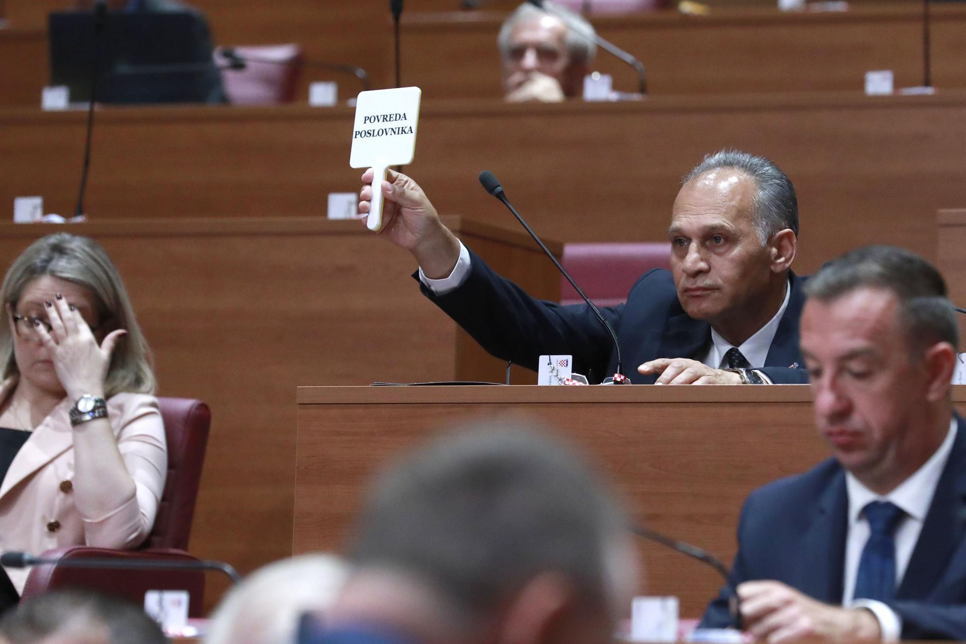 Siniša Hajdaš Dončić je otvorio raspravu o pozdravu ‘Za dom spremni‘, na što su mu počeli odgovarati ostali zastupnici. Predsjednik Sabora je podijelio nekoliko opomena jer su zastupnici koristili replike, a ne povredu Poslovnika.