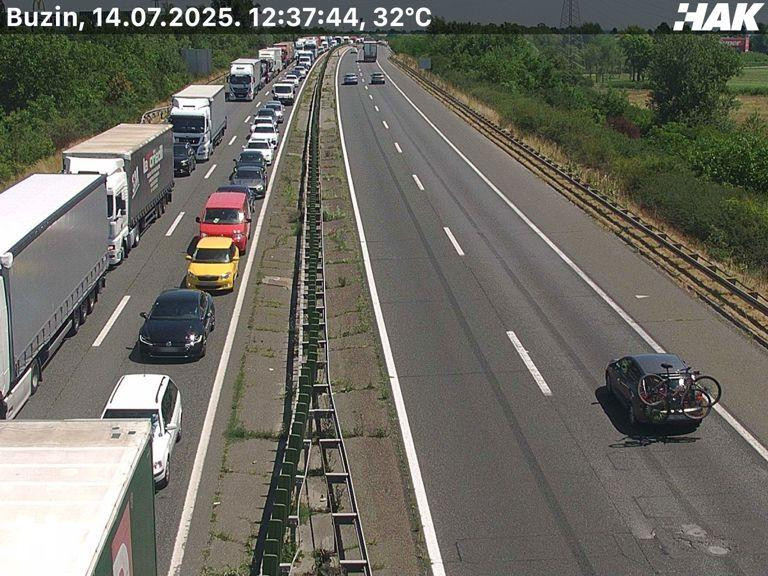 Zbog pojačanog prometa uoči vrhunca turističke sezone, na zagrebačkoj obilaznici, na autocesti A3 između čvora Buzin i naplatne postaje Lučko u smjeru mora, stvorila se kolona vozila duga oko 12 kilometara, izvijestili su u ponedjeljak iz Hrvatskog auto-kluba (HAK).