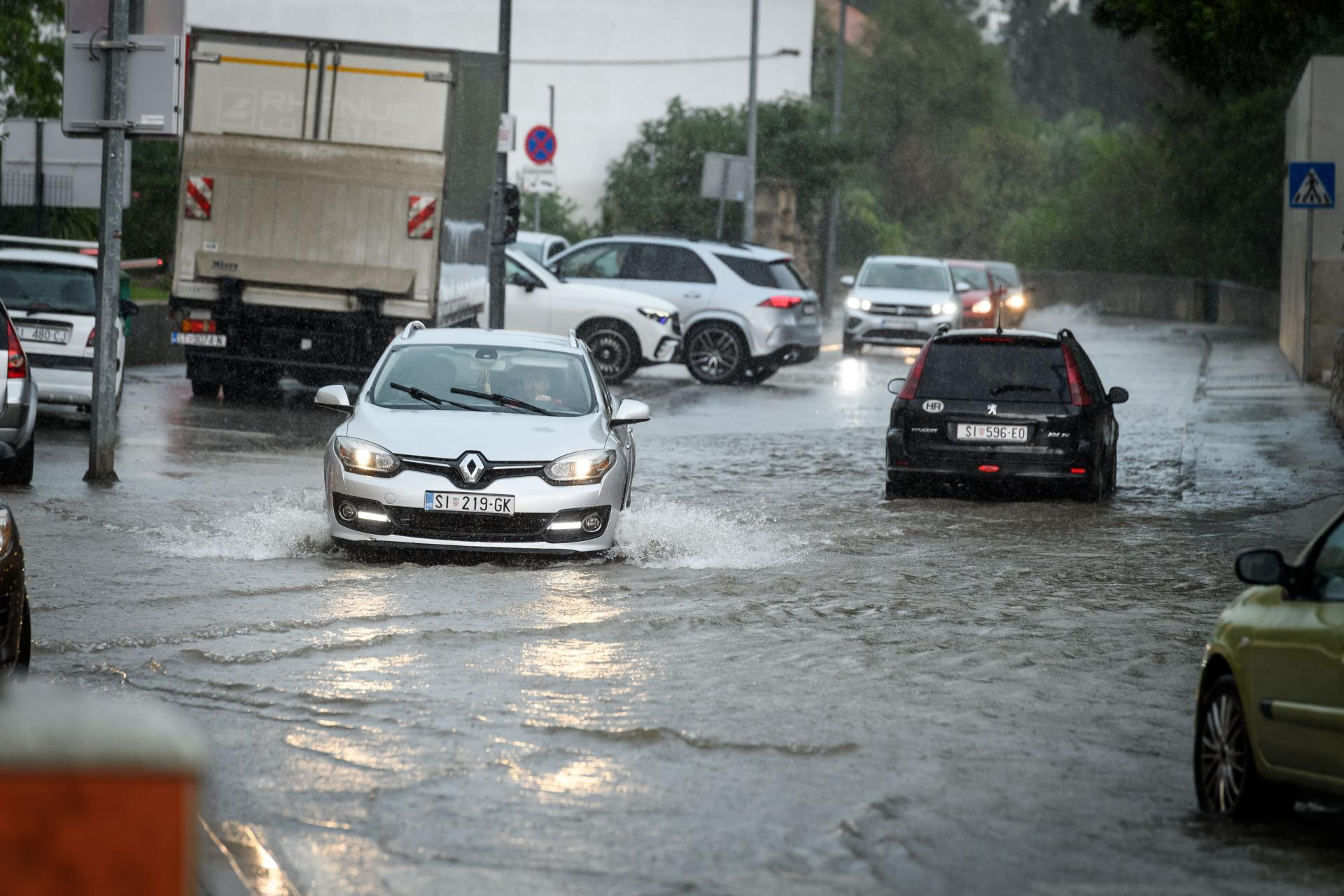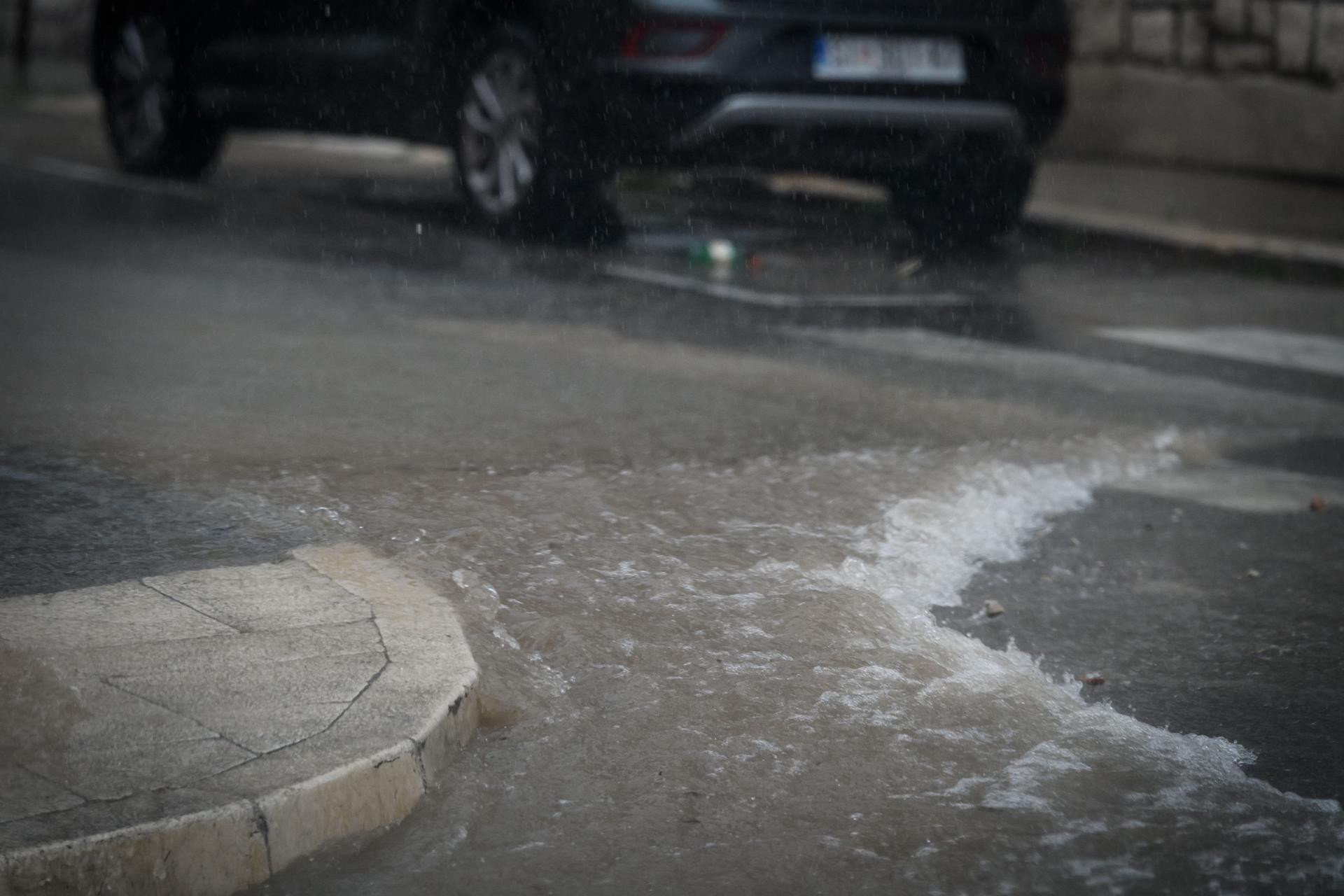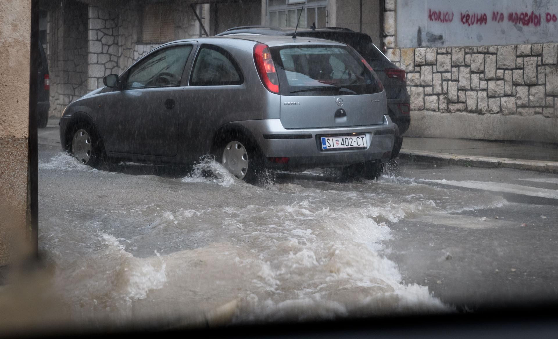 Snažno grmljavinsko nevrijeme praćeno jakim pljuskom pogodilo je u srijedu ujutro priobalni dio Šibensko-kninske županije izazvavši probleme u prometu, a osim cesta potopljeni su i podrumi zbog čega su vatrogasci zatrpani pozivima građana ali izlaze samo na hitne intervencije.