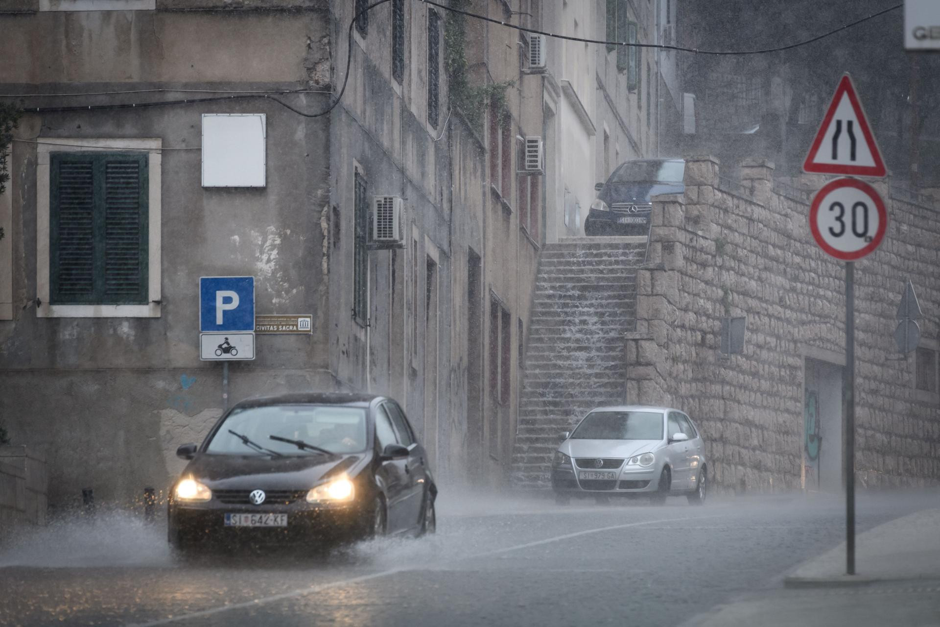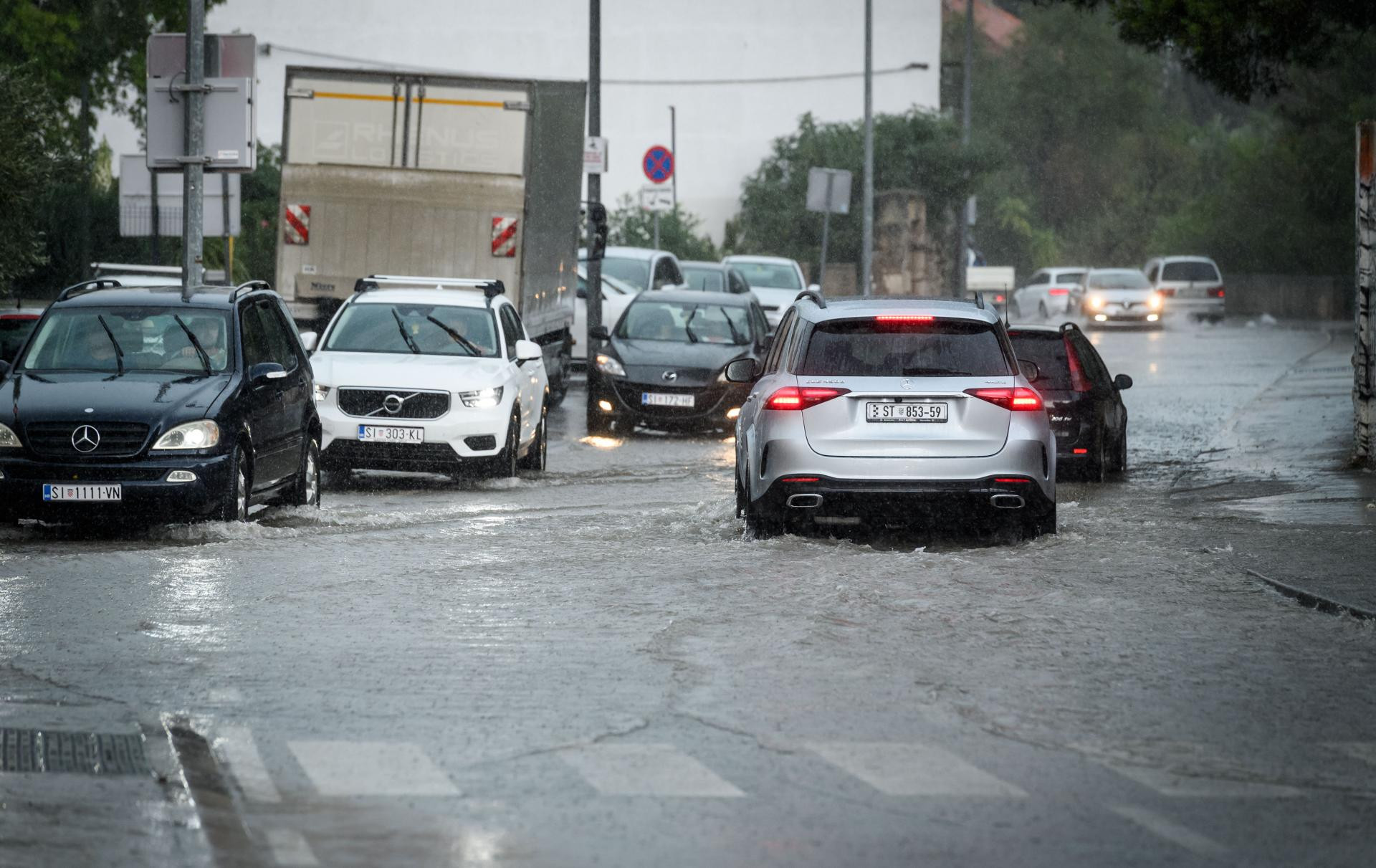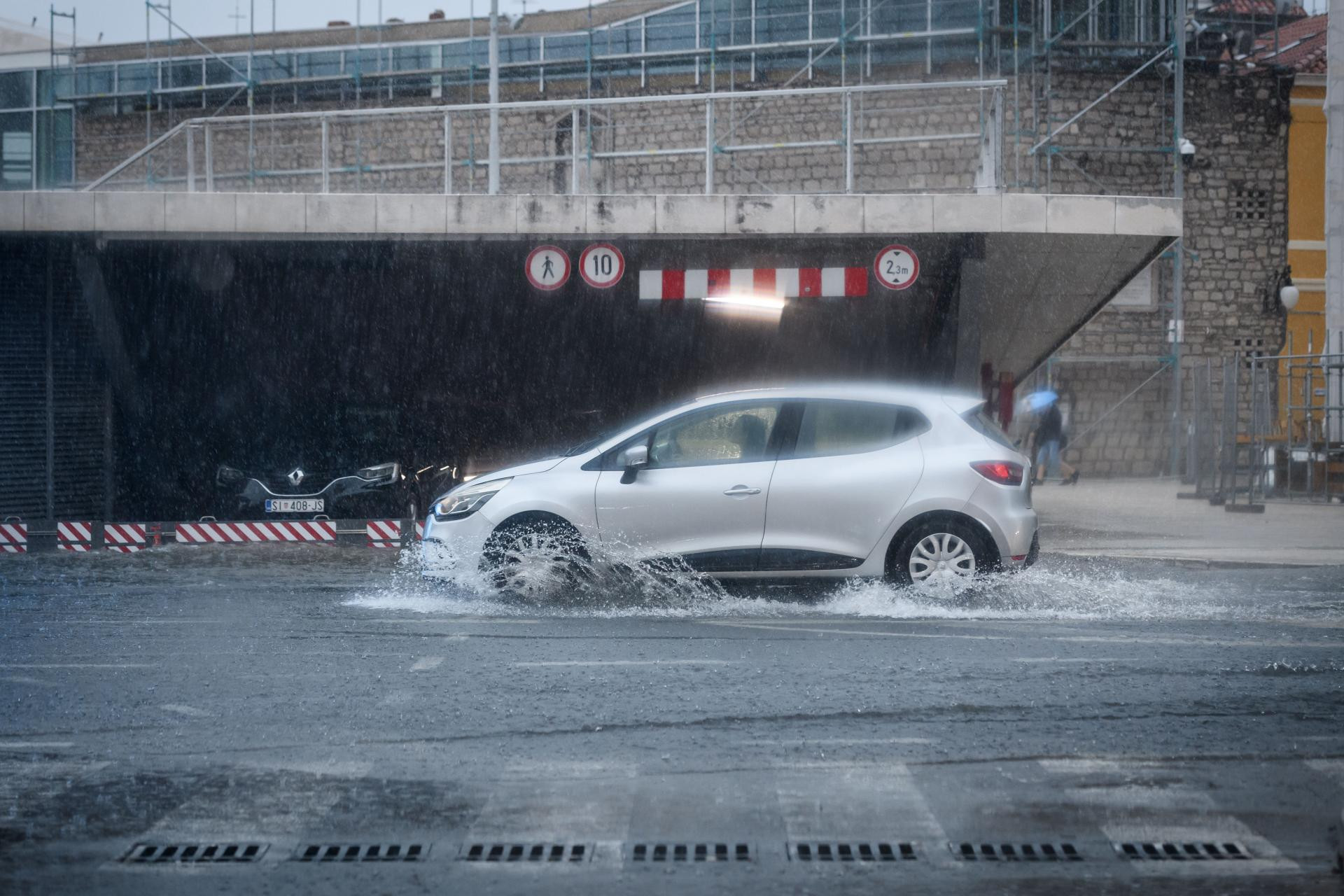 Snažno grmljavinsko nevrijeme praćeno jakim pljuskom pogodilo je u srijedu ujutro priobalni dio Šibensko-kninske županije izazvavši probleme u prometu, a osim cesta potopljeni su i podrumi zbog čega su vatrogasci zatrpani pozivima građana ali izlaze samo na hitne intervencije.