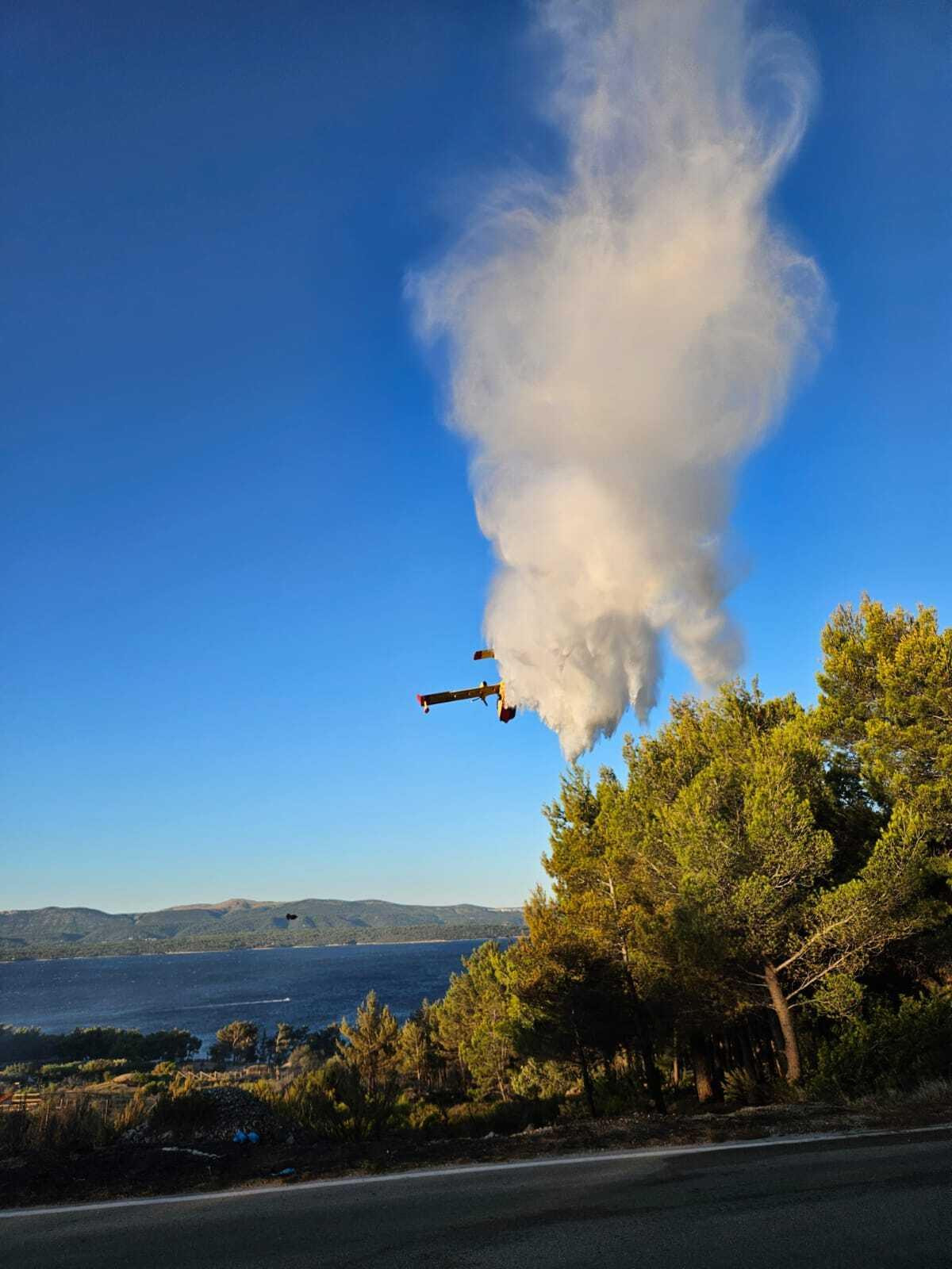 Izvijestio je kako je na terenu trenutno 56 vatrogasaca i 22 vozila iz Operativnog područja Brač, a od ranog jutra gasiteljima pomaže i canadair.