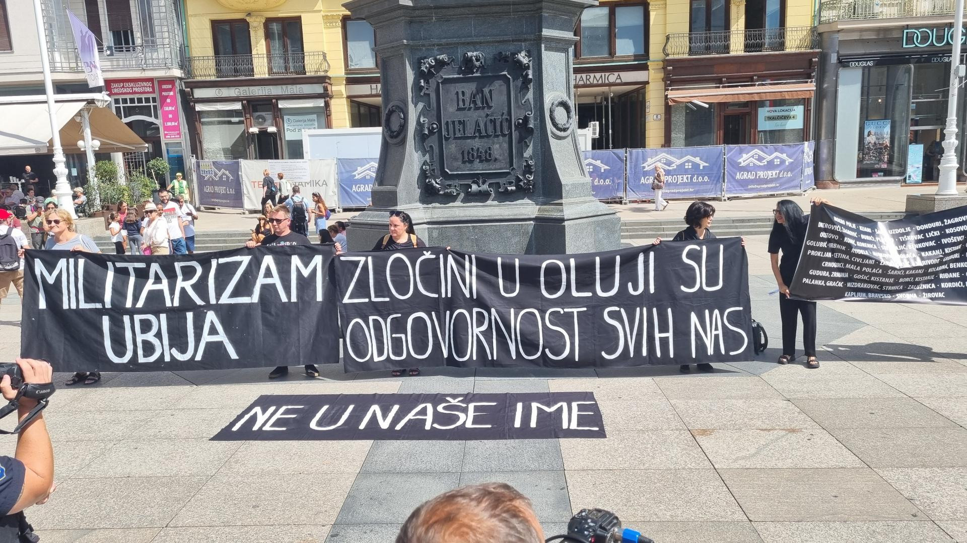 Udruge okupljene oko Documente na Trgu bana Josipa Jelačića raširili su transparent "Zločini u Oluji su odgovornost svih nas" koji je naišao na neodobravanje malobrojnih građana koji su se našli na glavnom zagrebačkom trgu. Sedmero predstavnika udruga Centar za žene žrtve rata - ROSA, Udruženje za društvena istraživanja i komunikacije - UDIK iz Sarajeva, Centar za građansku hrabrost, Documenta i Ženska mreža Hrvatske smatraju kako je Hrvatska počinila niz ratnih zločina u VRO Oluji.