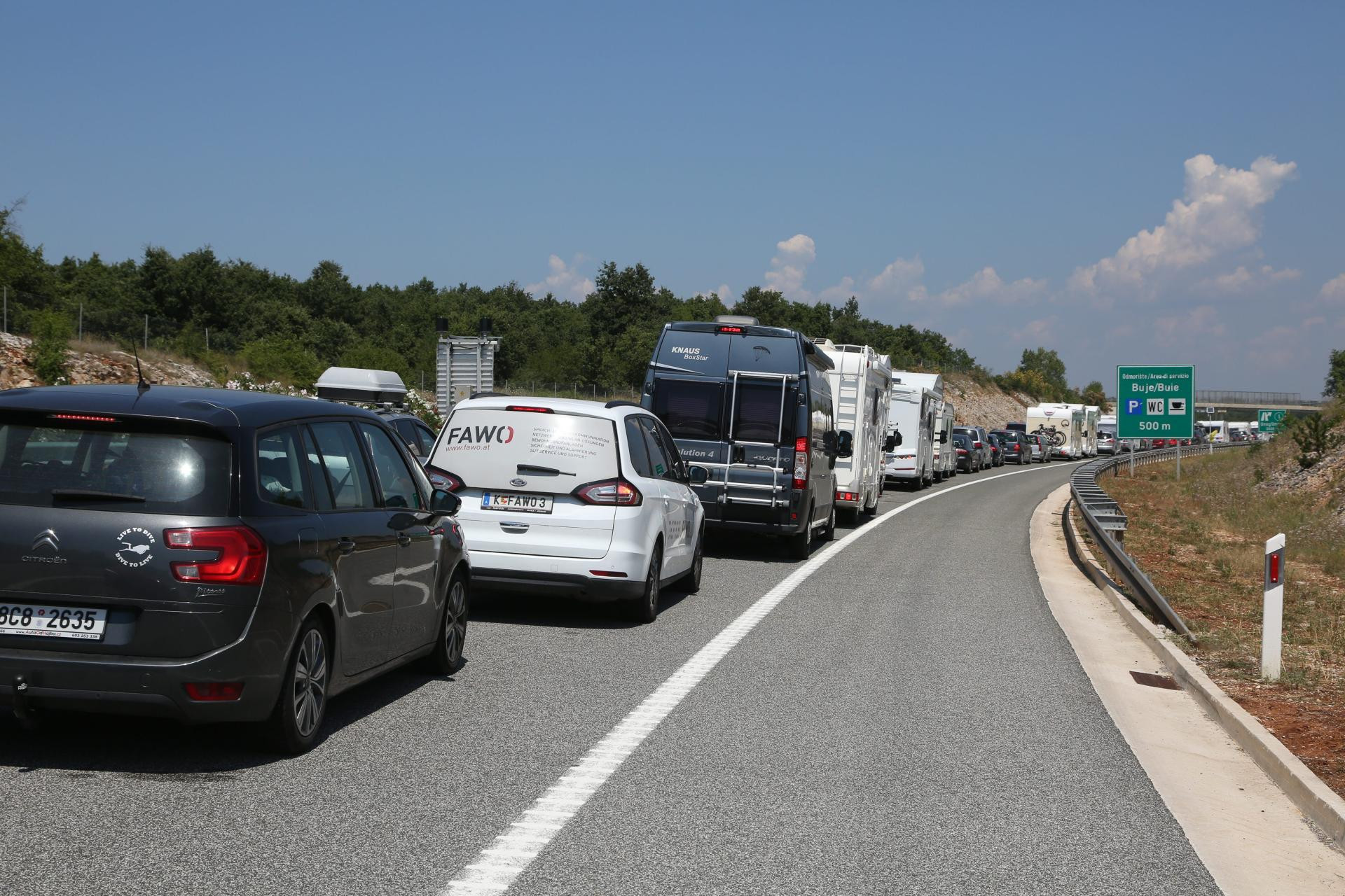 - Hrvatska je napravila autoceste do slovenske granice, a vikendom se „siluju” lokalne i nerazvrstane ceste Buzeštine i Buja kako bi jedan preko drugoga čim prije stigli do Istarskog mora. Turisti iz Austrije, Italije i Njemačke po tri sata strpljivo stoje u dolini Dragonje. A oni znaju kratice, poručio je Robert Marušić iz Buzeta u ime te inicijative.