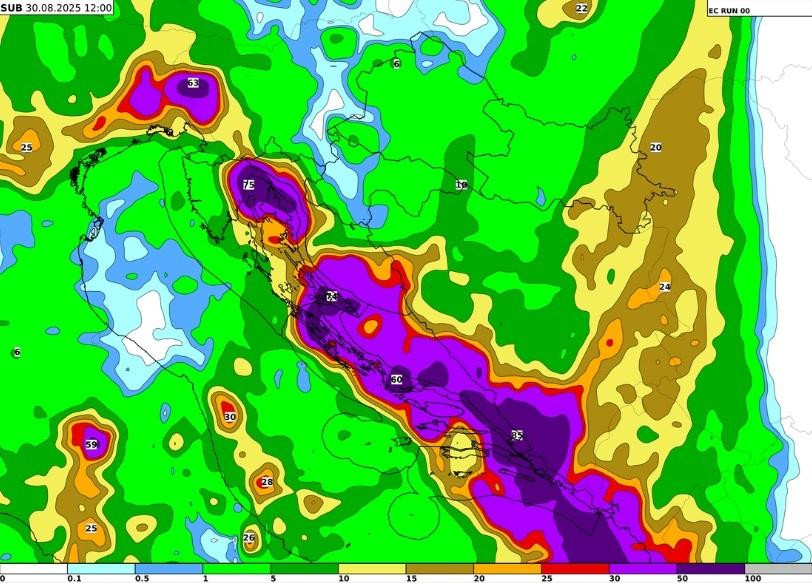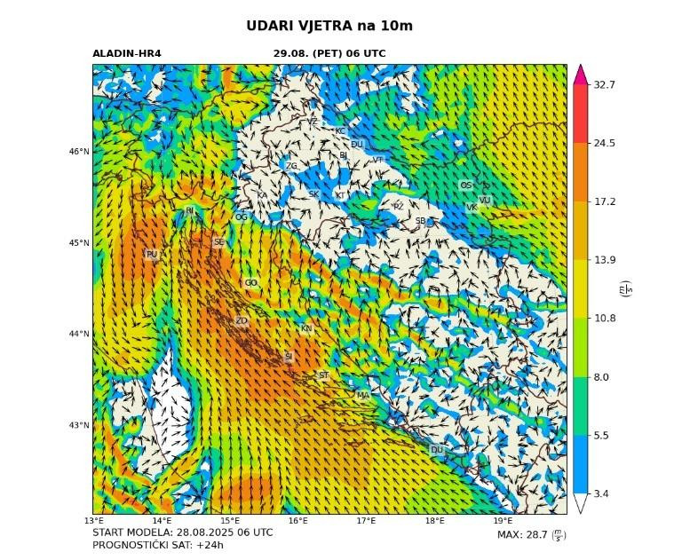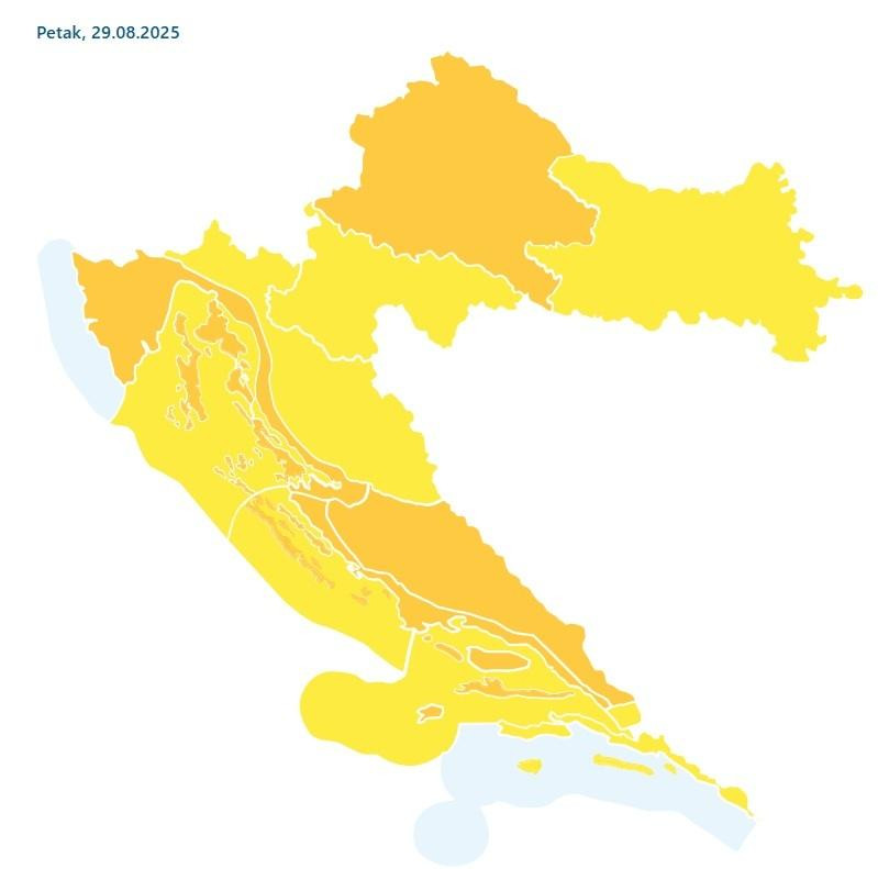 - U petak i subotu, 29. i 30. kolovoza, mjestimice će biti obilnije kiše i izraženih pljuskova s grmljavinom, treba biti pripravan i na grmljavinsko nevrijeme ponegdje praćeno tučom, olujnim vjetrom, na Jadranu moguće i pijavicama.