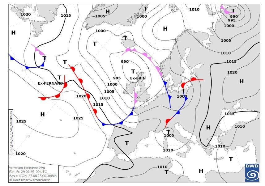 Termobarička dolina sa sjeverozapada Europe se produbljava i približava našim krajevima. Na njezinoj prednjoj strani, u jakoj jugozapadnoj struji pritječe vlažan i nestabilan zrak, a u subotu (30. kolovoza) će se dolina premještati preko Hrvatske na istok Europe, objavio je DHMZ.