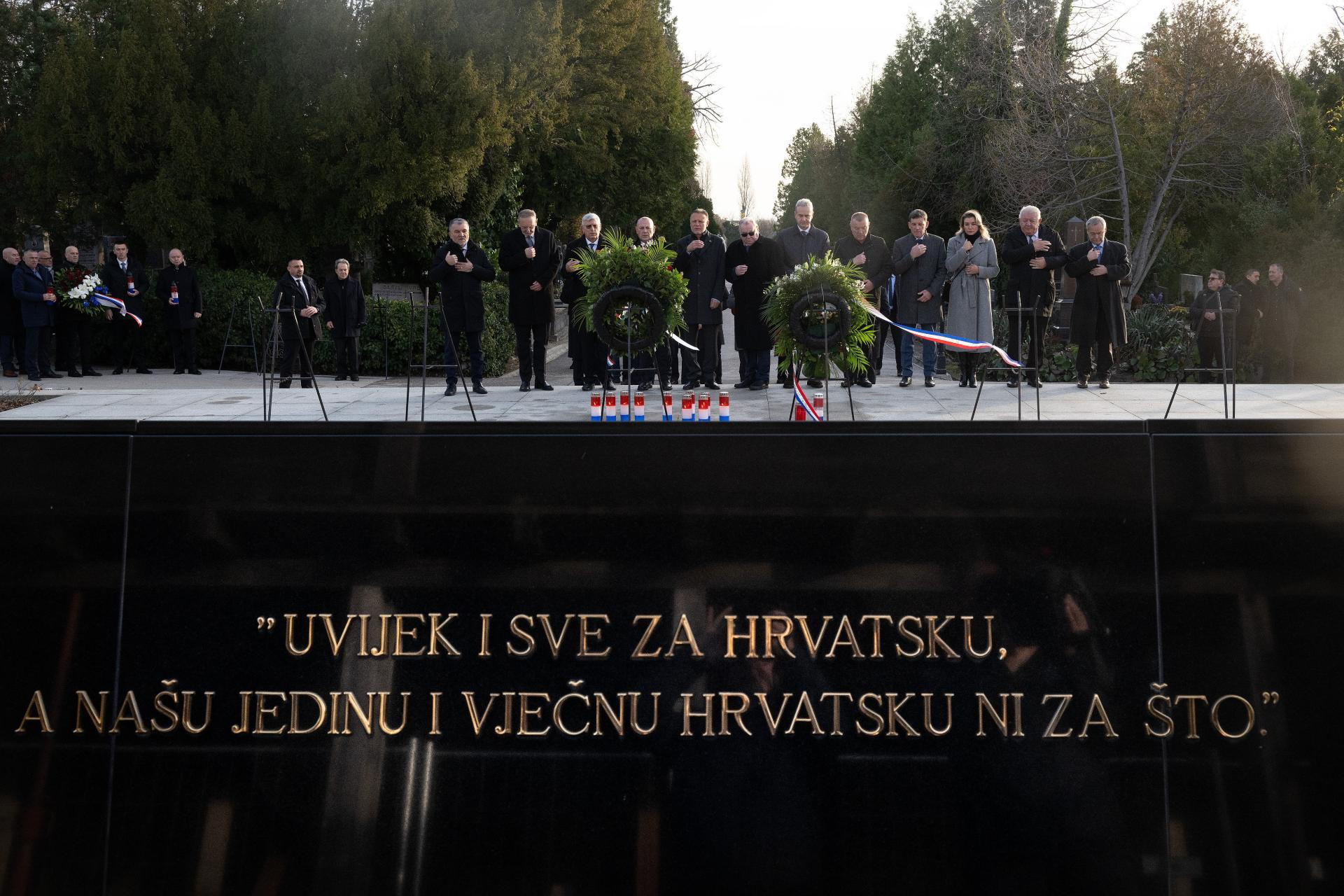 Stranačko izaslanstvo predvođeno zamjenikom predsjednika HDZ-a Tomom Medvedom i glavnim tajnikom HDZ-a Krunoslavom Katičićem na grobu dr. Tuđmana položilo je vijenac i zapalilo svijeću.