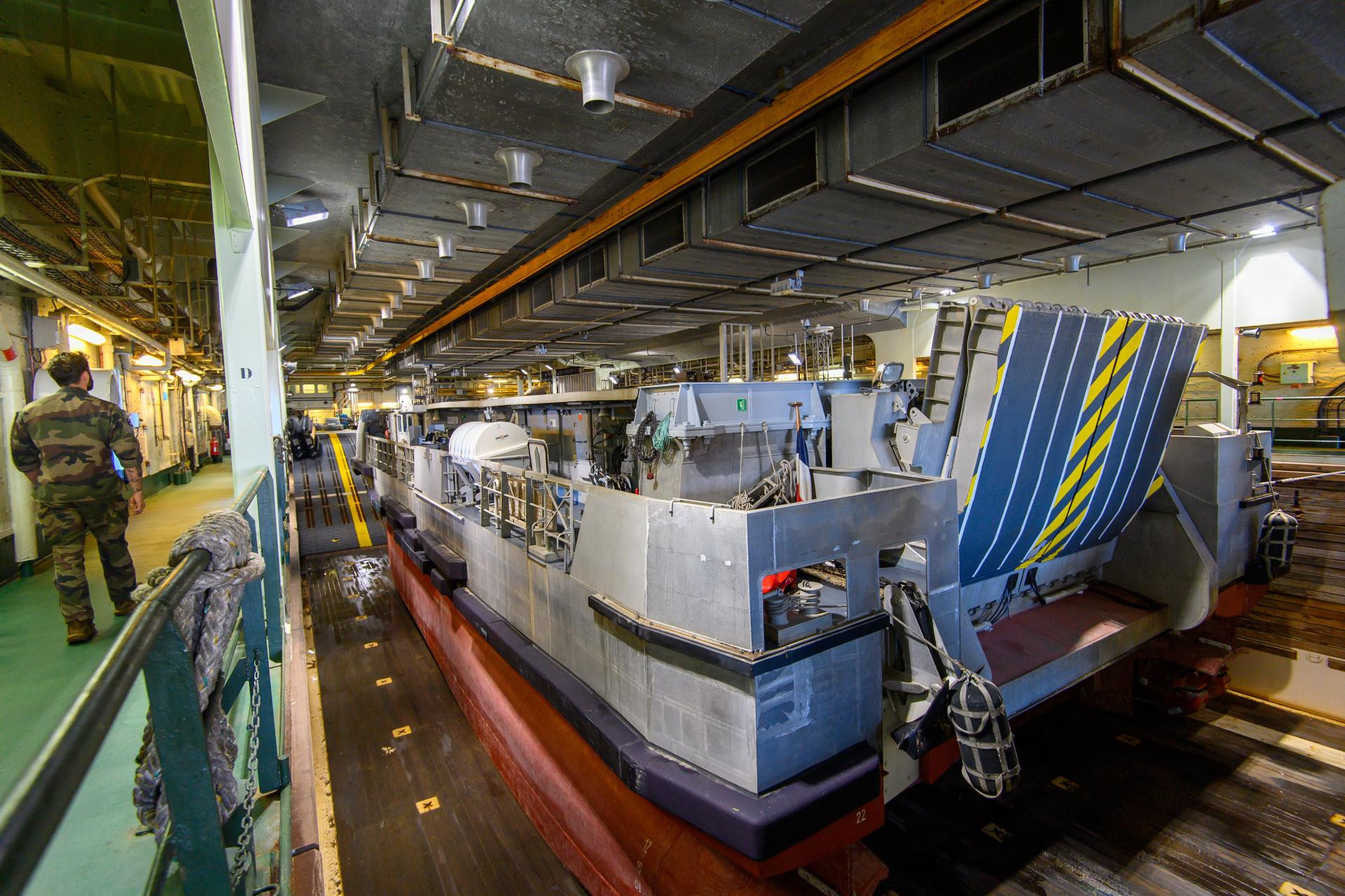 Na brodu su i četiri desantna plovila te dvije lebdjelice, a pruža i smještaj za 450 vojnika s punom opremom uz posadu od 177 ljudi. Dixmude je naoružan dvama topovima Breda Mauser kalibra 30 milimetara i četiri laka topa kalibra 12,7 milimetara, kao i raketama Simbad.