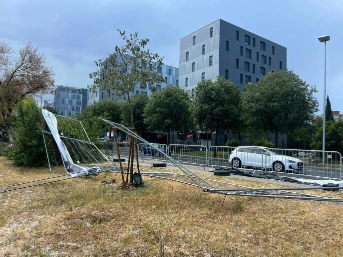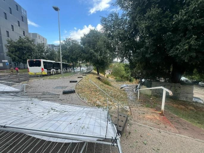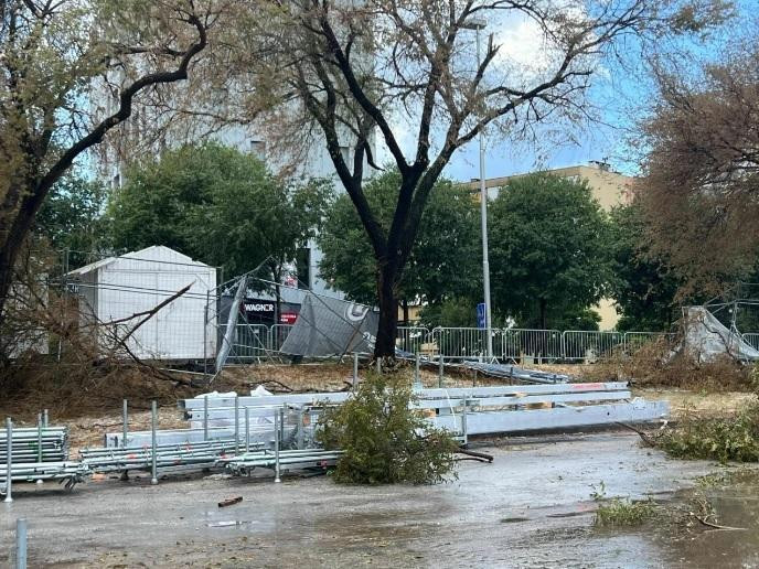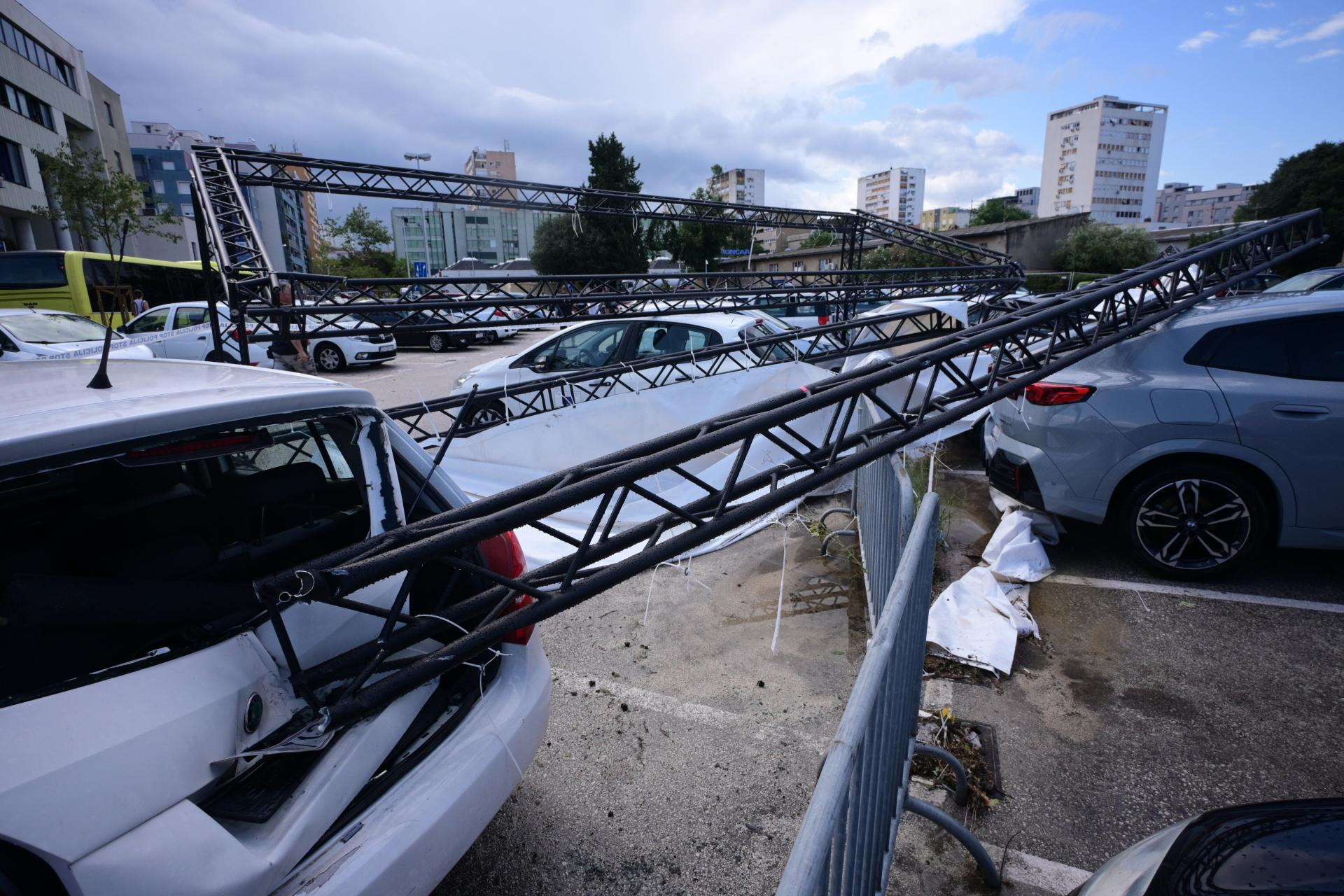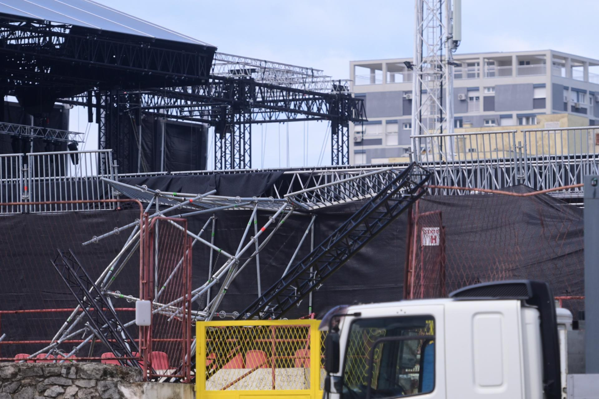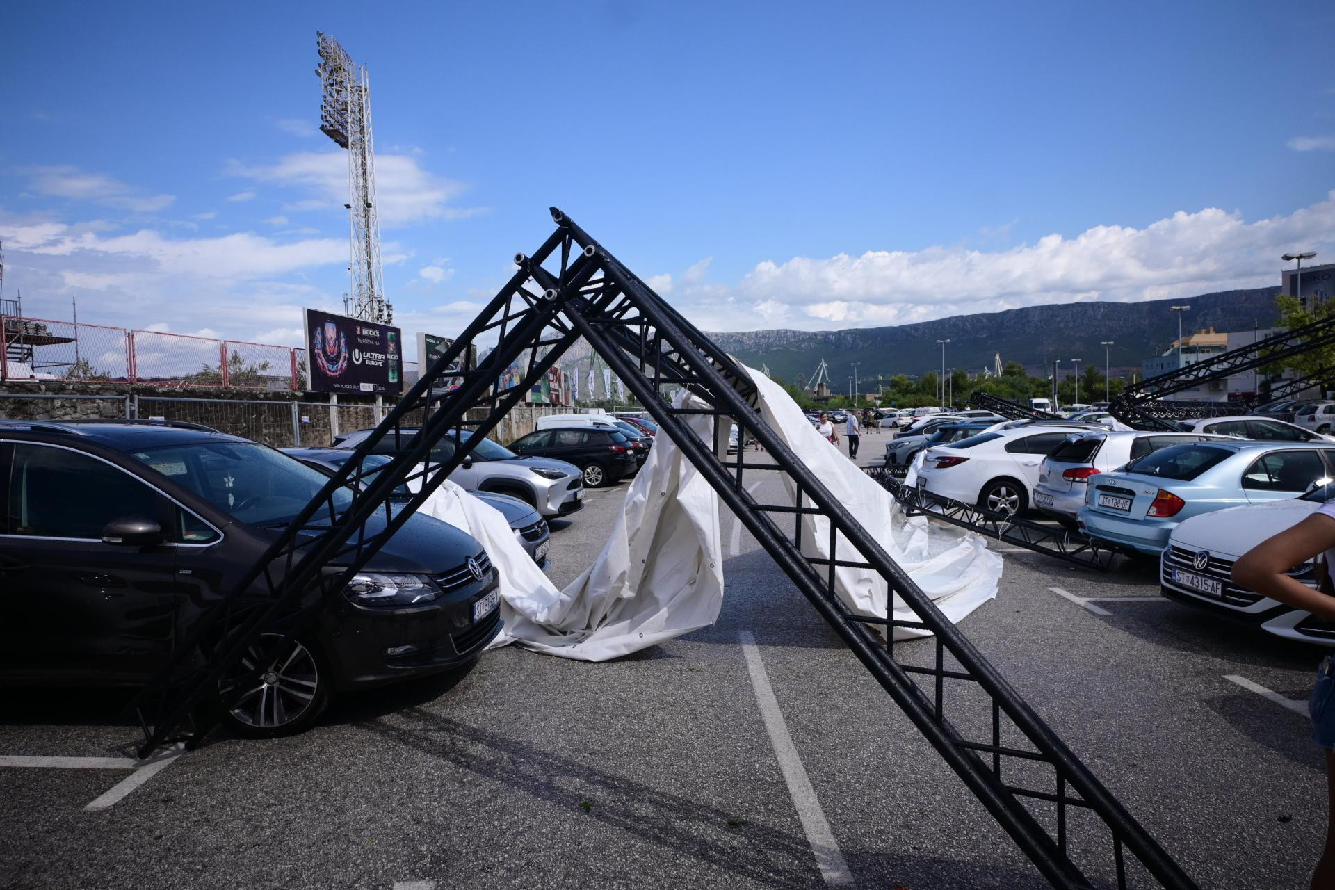 Nevrijeme u utorak ujutro u Splitu nije zaobišlo ni Park mladeži, u kojem se već danima priprema pozornica za glazbeni festival Ultra, a koji počinje u petak.