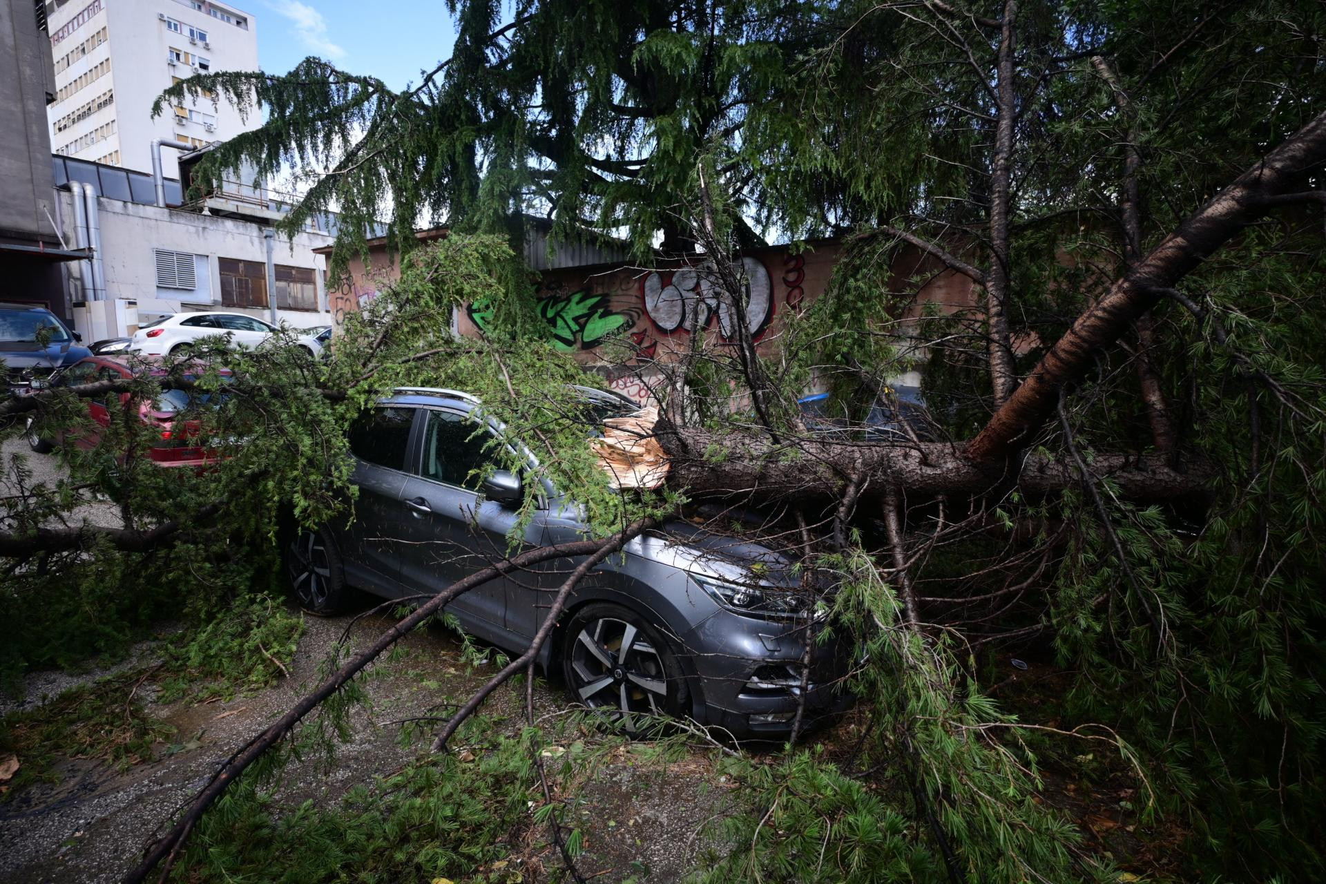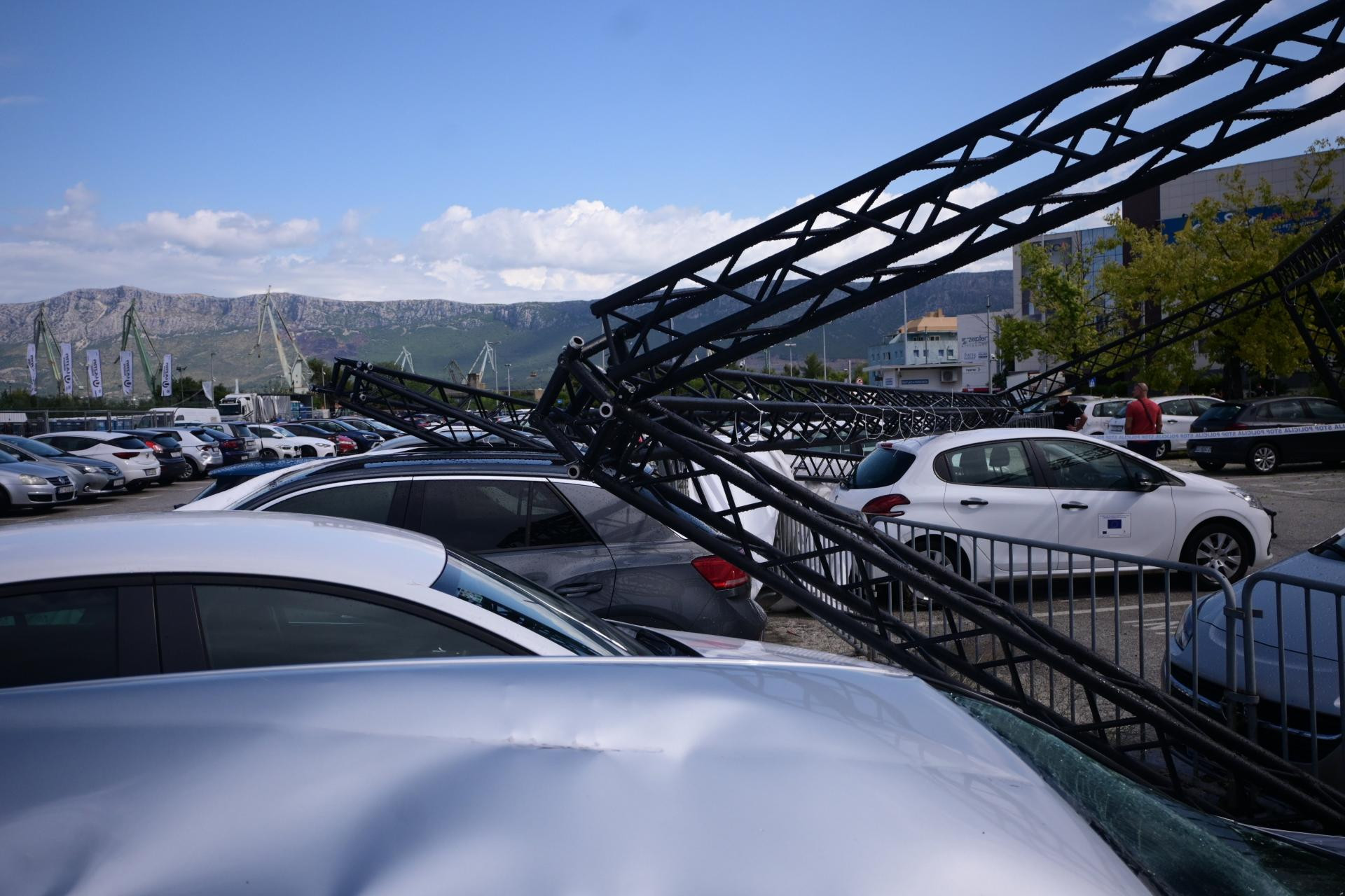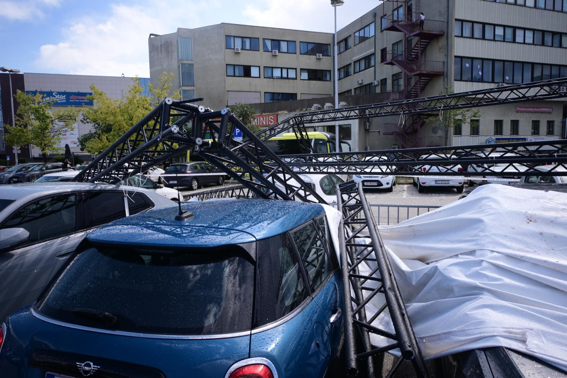 Ogromna šteta učinjena je i padom konstrukcije na obližnje automobile koji su ‘odmarali‘ na obližnjem parkingu.
